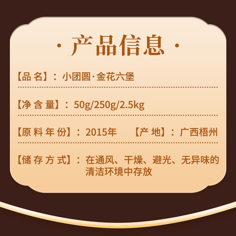 【金花六堡】六山知野丨2015金花六堡-小团圆 广西六堡茶 黑茶 50g/250g/2500g 罐装(支持试喝1泡)