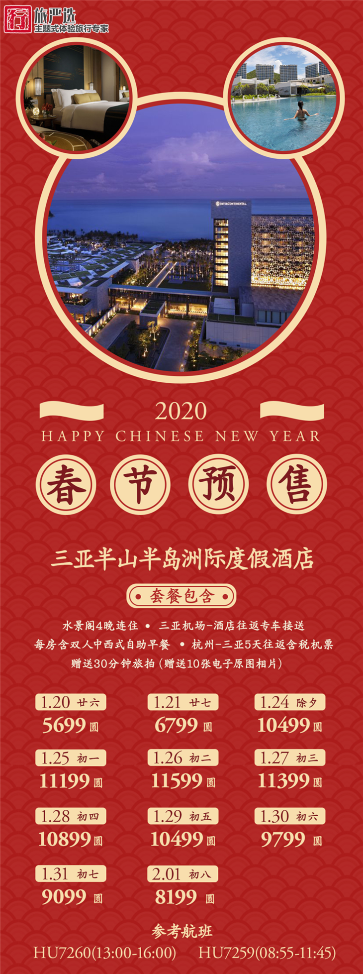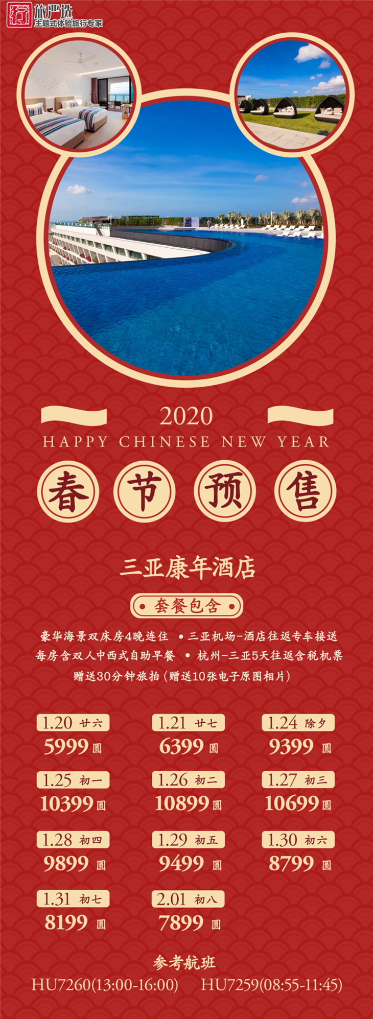 每人预付100元报名,具体选择的酒店名称,出行时间及人数,请于96093热线回访时告知客服,报名成功与否以通知支付尾款为准。