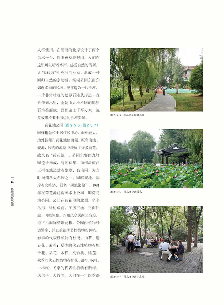 4.可持续性。扬州公园体系建设中非常注意可持续性。既有大、中、小各类公园的合理搭配, 同时又注重彰显特色,避免“千园一面”,同时在公园建设中设计出了高水平的“留白”。为未来发展提供了空间。在建好公园的同时,又特别注重管好公园。2017 年 12 月 1 日,扬州颁布、实施了《扬州市公园条例》,明确公园体系建设的法制化,为扬州市民的生态福利划下“红线”,对公园管理进行监督,确保公园高水平管理。公园的活动也丰富多彩,既有专业化运动活动,也有非商业性、非竞技性的群众体育活动,确保了公园的吸引力和人气。 作为国内首套公园城市理论与案例研究丛书,我非常愿意向业内同行推荐,从书中既可以看到扬州古典园林的文脉,又能了解到扬州现代公园建设的实践案例,更能领略到扬州作为生态城市的宏观画面,对这座精致、宜居的城市背后支撑的理论体系会更深入地理解。