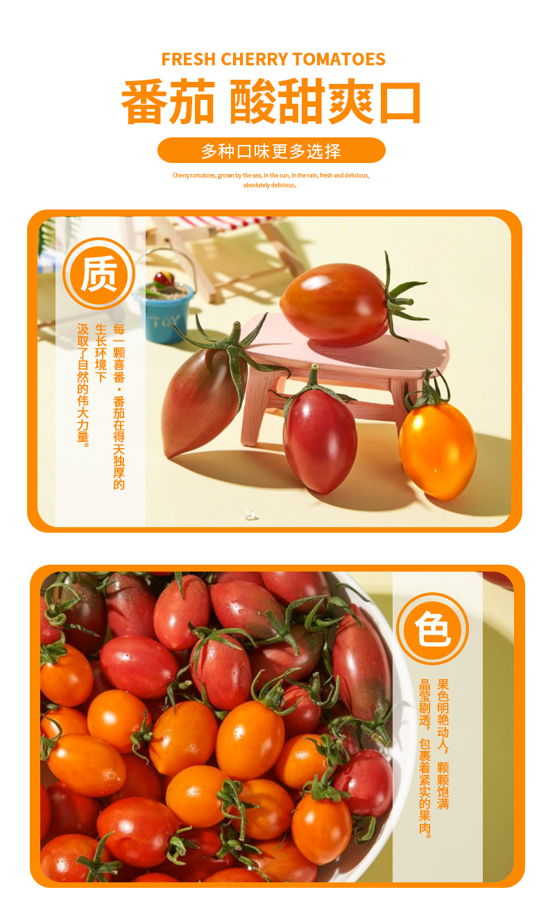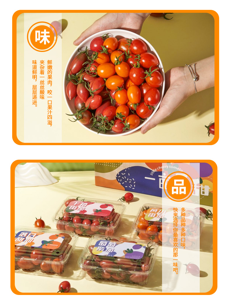 3.紫葡萄品种的小番茄为酸甜口感,硬脆爽口,介意者慎拍喔~