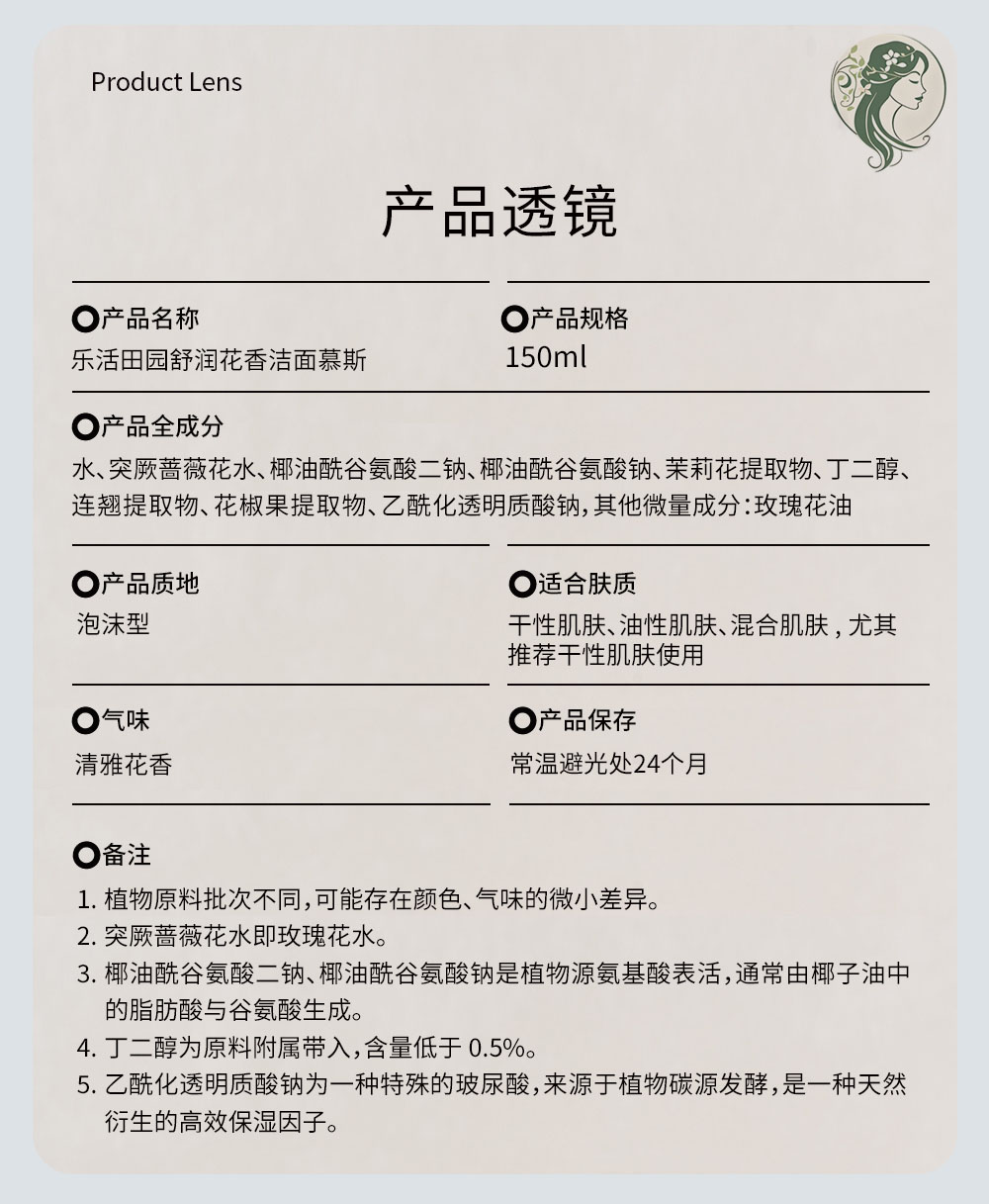 乐活田园舒润花香洁面慕斯