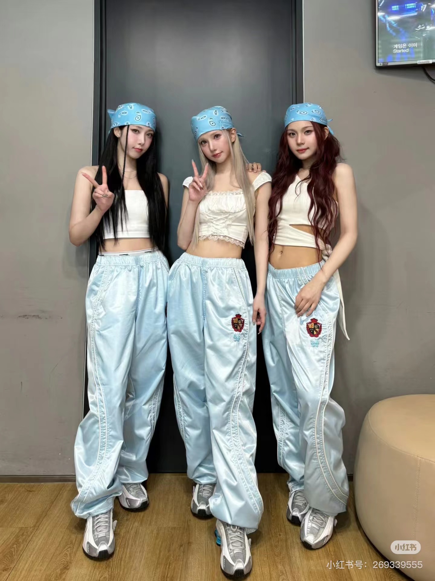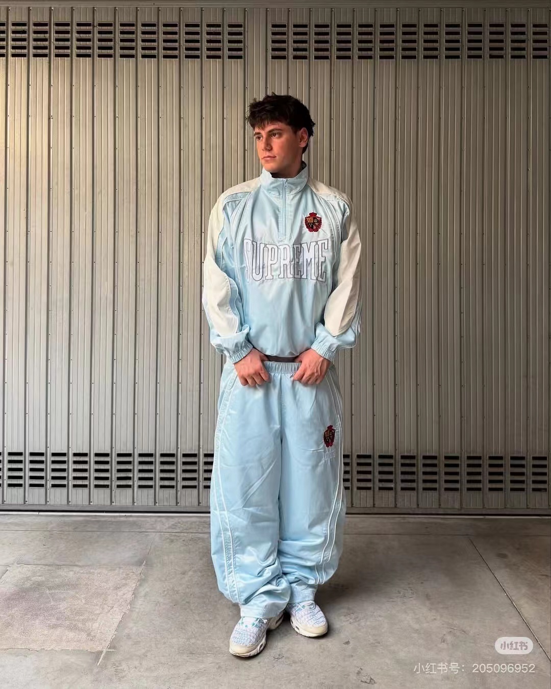 F031232美式潮流缎面贴片logo针织运动裤男女同款学院风刺绣运动裤