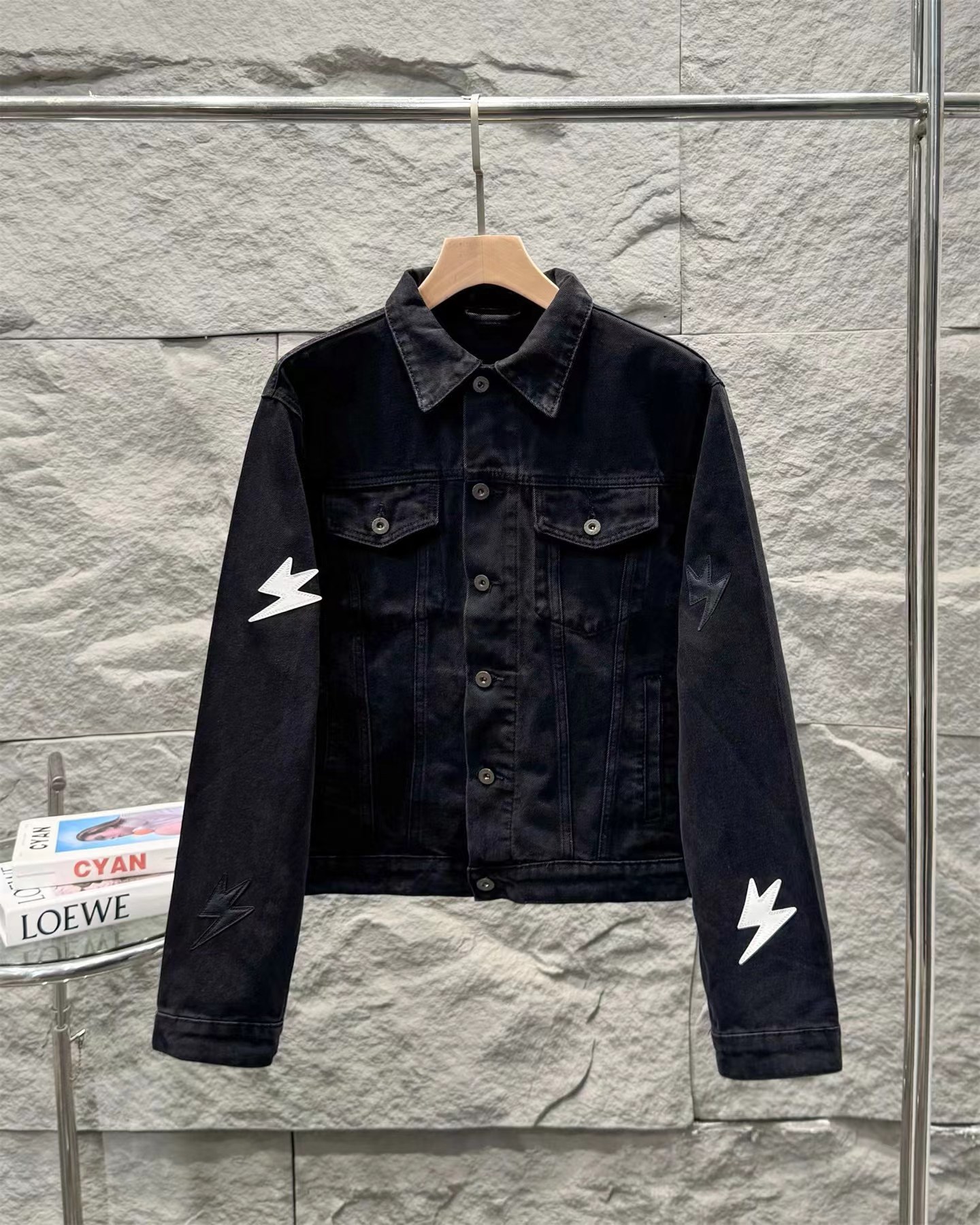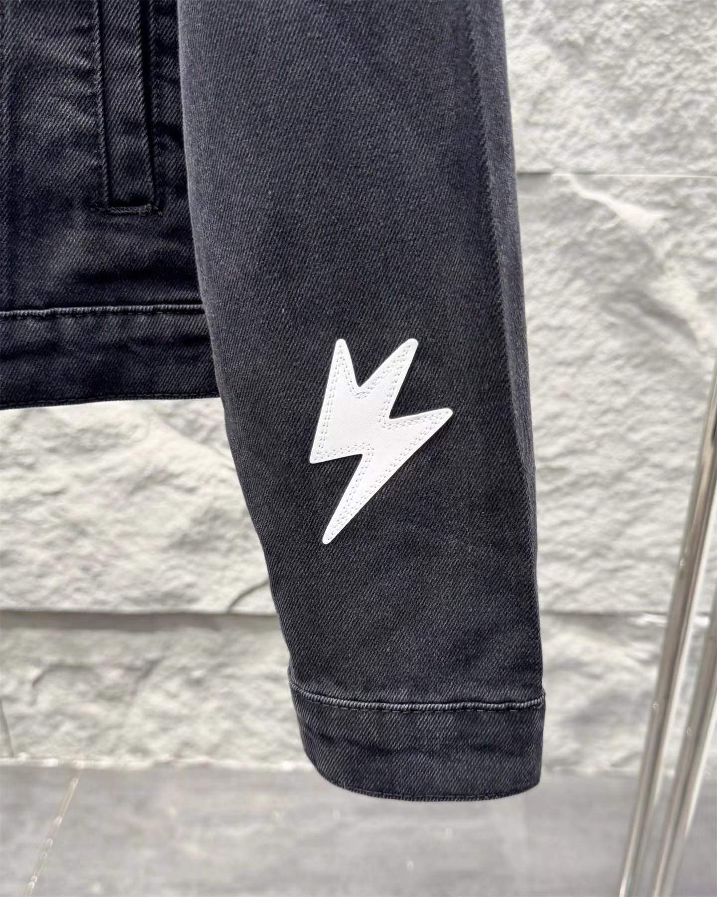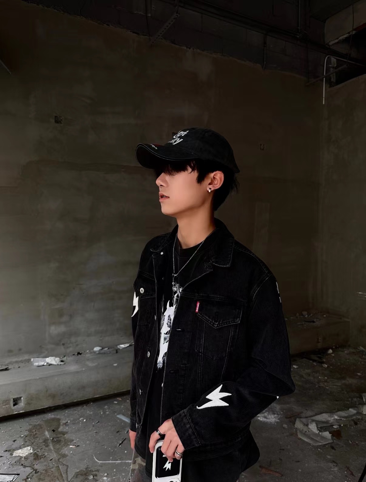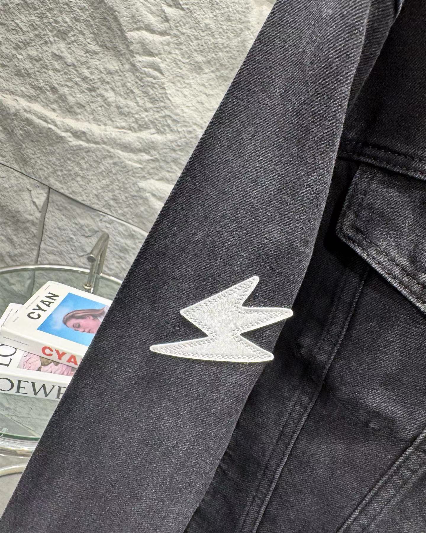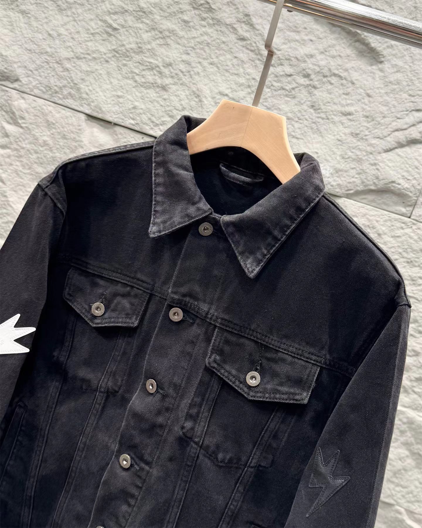 街头涂鸦背后梵文字母水洗牛仔外套!很街头的一件外套,涂鸦闪电牛。秋天牛仔外套真的百穿又不腻!水洗黑做旧复古质感太绝了。衣服上梵文印花?定制闪电皮上身超有质感。简约又不简单的时髦感拿捏住了~天气转凉的秋天穿正正好