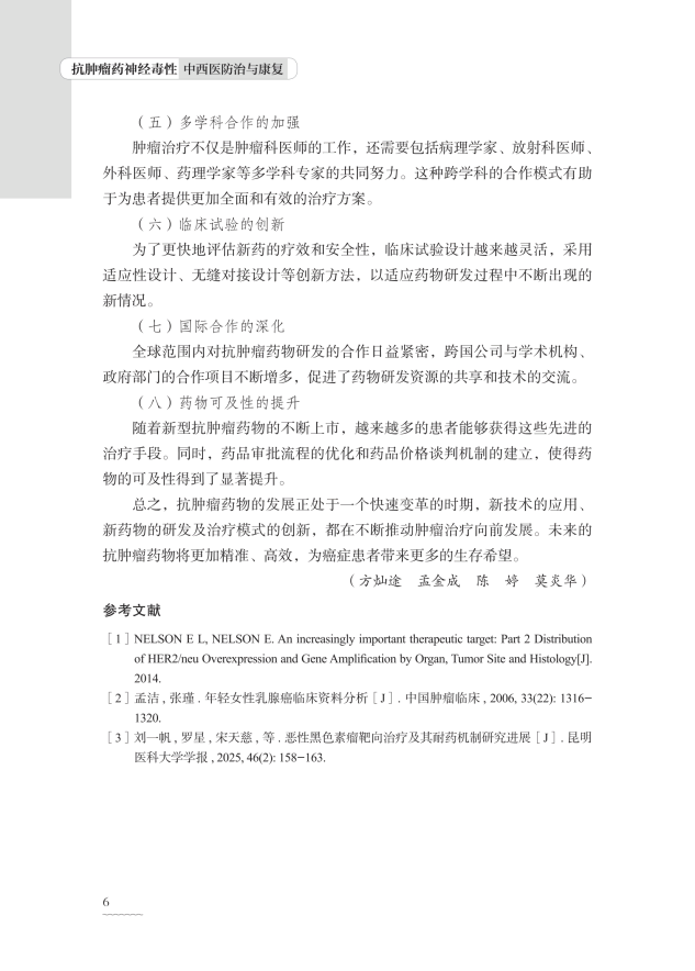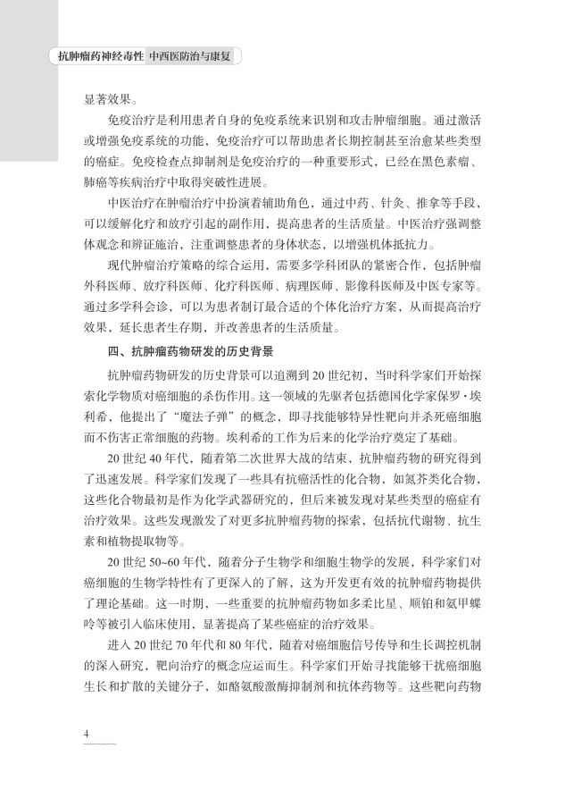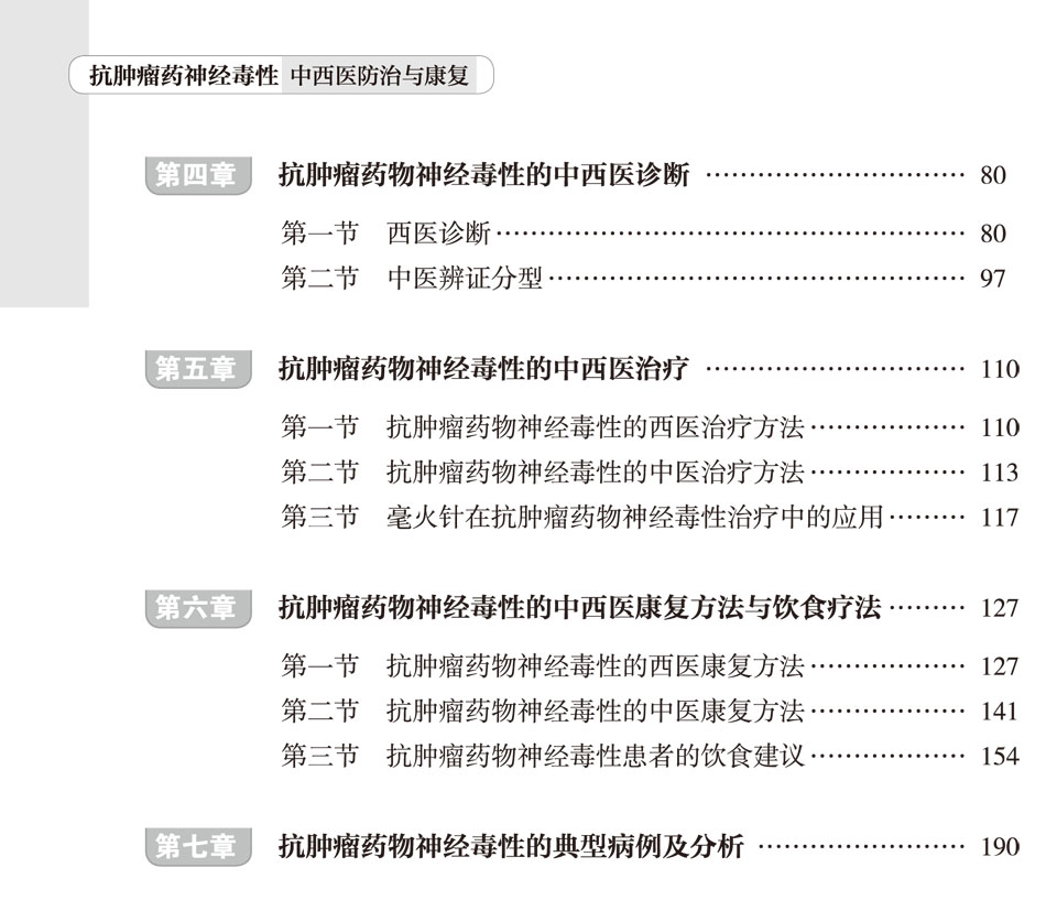 在当今的肿瘤治疗领域,抗肿瘤药物的应用已成为不可或缺的一部分。然而,这些药物在带来疗效的同时,也常常伴随着一系列不良反应,尤其是神经毒性。神经毒性不仅影响患者的生活质量,还可能限制药物的使用剂量,因此,如何有效预防和管理这些毒性反应已成为临床治疗中的重要课题。抗肿瘤药物引起的神经毒性主要分为中枢神经系统毒性和外周神经系统毒性两大类。中枢神经系统毒性虽然较少见,但其严重性不容忽视,可能引发惊厥、癫痫样发作等严重症状。周围神经毒性(CIPN)则更为常见,表现为四肢末端感觉异常、麻木或疼痛等症状,且停药后症状可能持续加重。在应对这些毒性反应时,中西医结合治疗模式显示出其独特的优势。中医通过辨证施治,采用针灸、中药泡洗等方法,可以有效改善周围神经病变,并在一定程度上预防和缓解神经毒性。此外,中医药还可以通过扶正祛邪、调节免疫等机制,增强患者的整体抗病能力,从而提高治疗效果。现代医学研究也在不断探索新的预防和治疗策略。例如,维生素B及其衍生物被证明可以预防某些化疗药物引起的神经毒性。此外,针对特定药物的生物标志物研究也在逐步推进,以期更早地识别和干预神经毒性的发展。《抗肿瘤药神经毒性中西医防治与康复》旨在系统总结抗肿瘤药物神经毒性的发生机制、临床表现及防治策略,特别介绍了中西医结合在这一领域的应用与进展。希望通过本书的汇编,能够为临床医师提供全面的参考依据,帮助患者更好地应对治疗过程中的挑战,提高他们的生活质量。