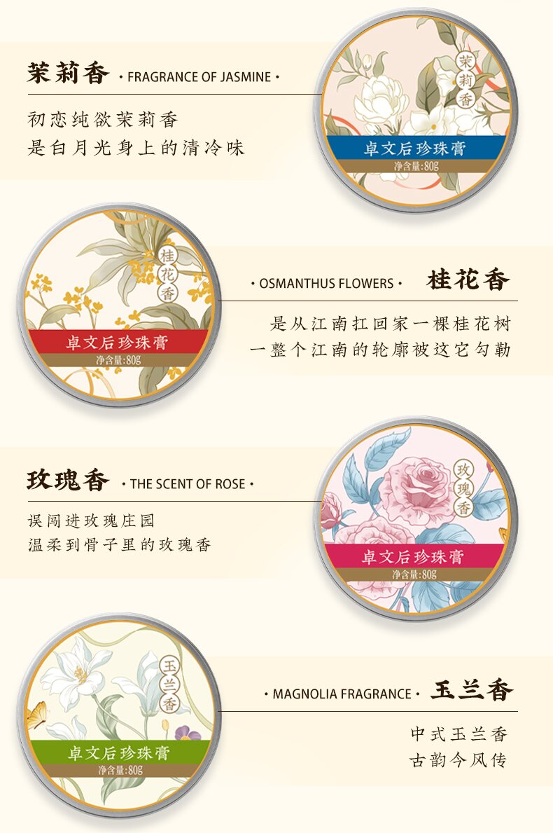 【百年老品牌 非物质文化遗产】贞格格卓文后联名款上海老国货文创珍珠膏 百合茉莉樱花玫瑰补水保湿面霜 4款可选 80g/盒