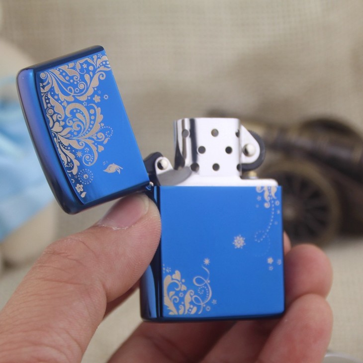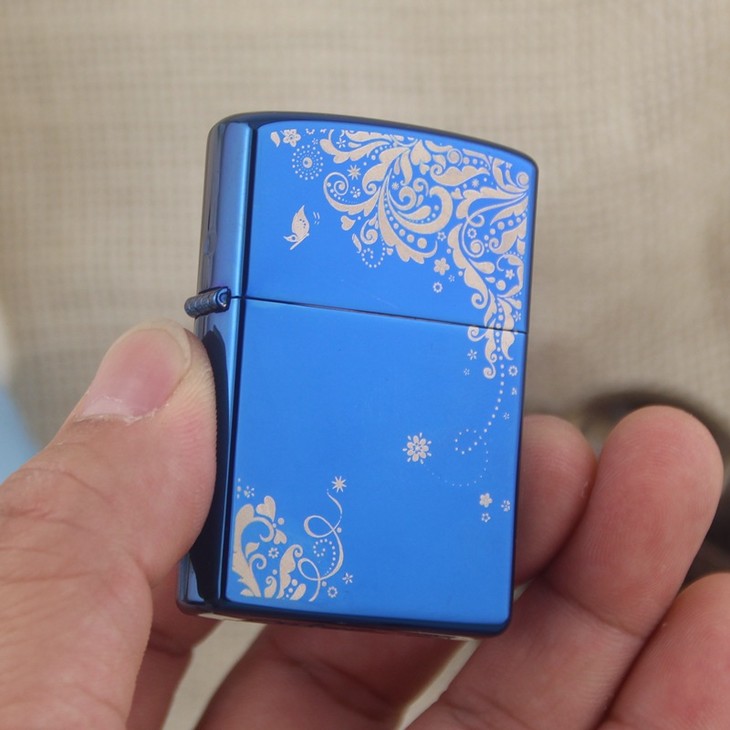 【打火机】。铜壳首领CHIEF创意防风煤油打火机CF0444L春意 蓝冰