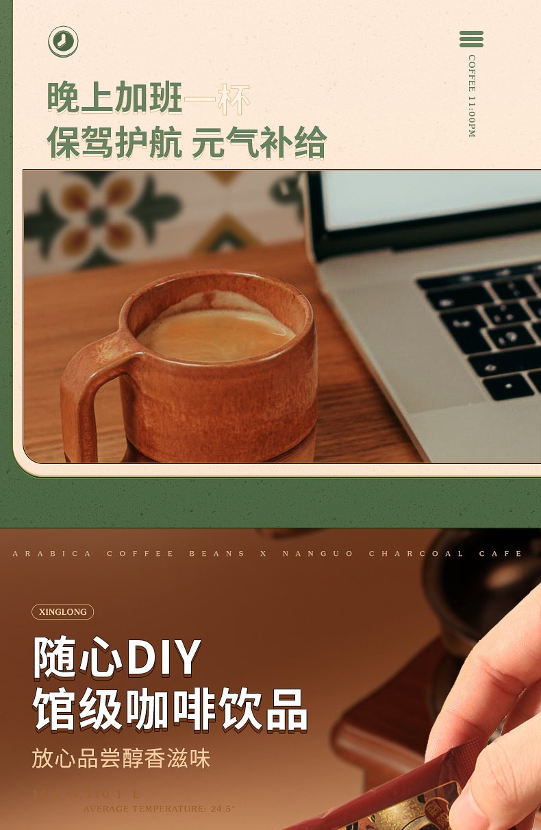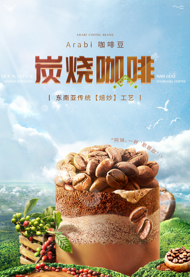 海南特产南国炭烧咖啡25包三合一速溶特浓咖啡粉袋装学生冲饮