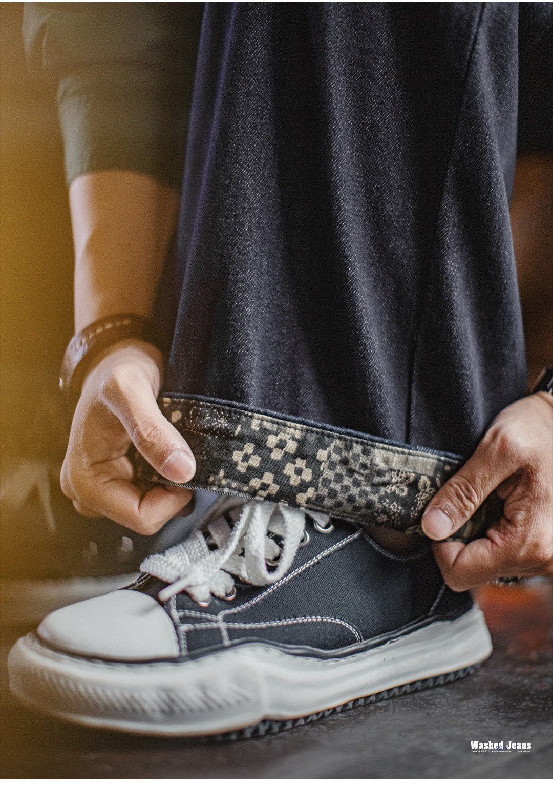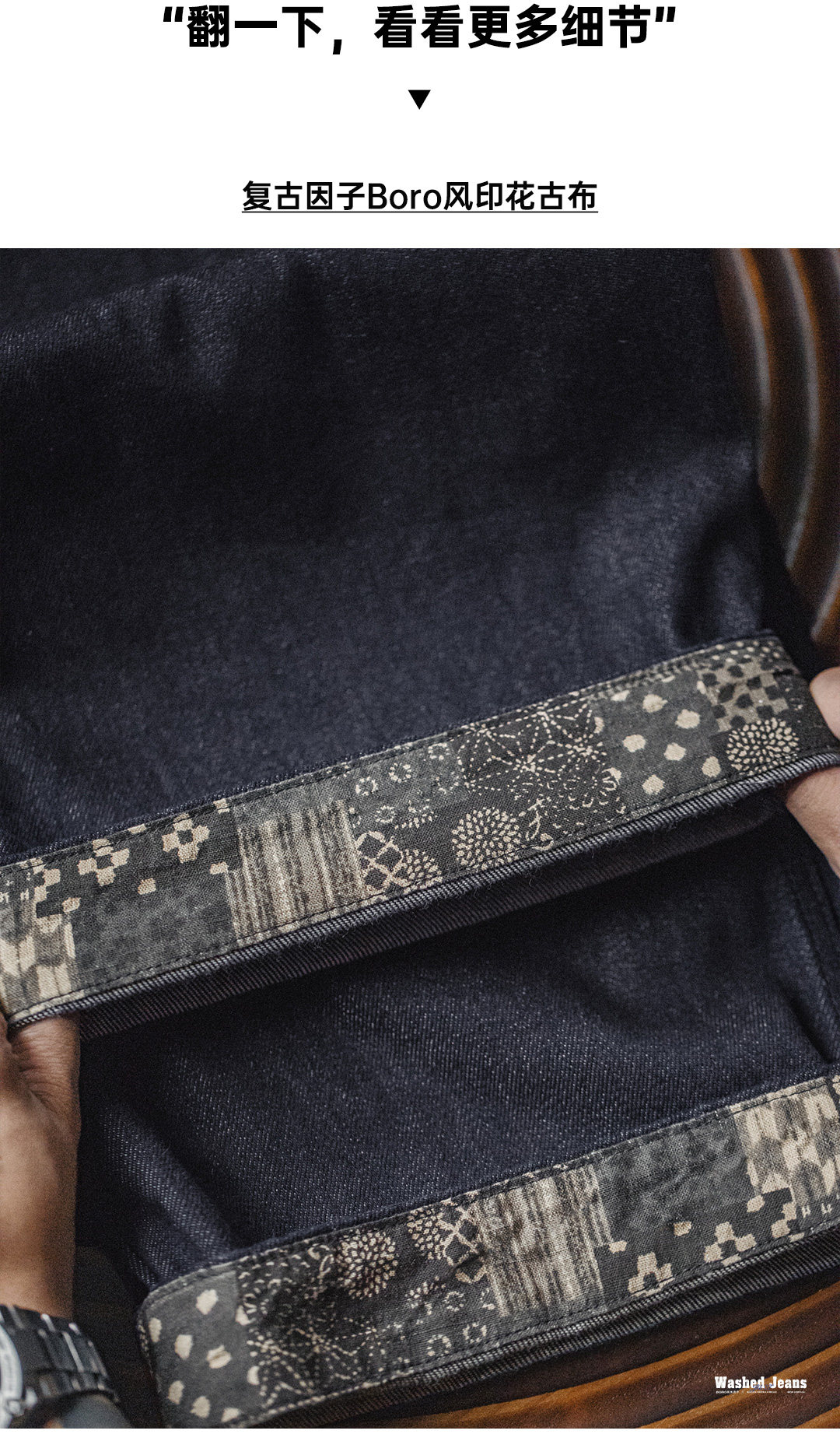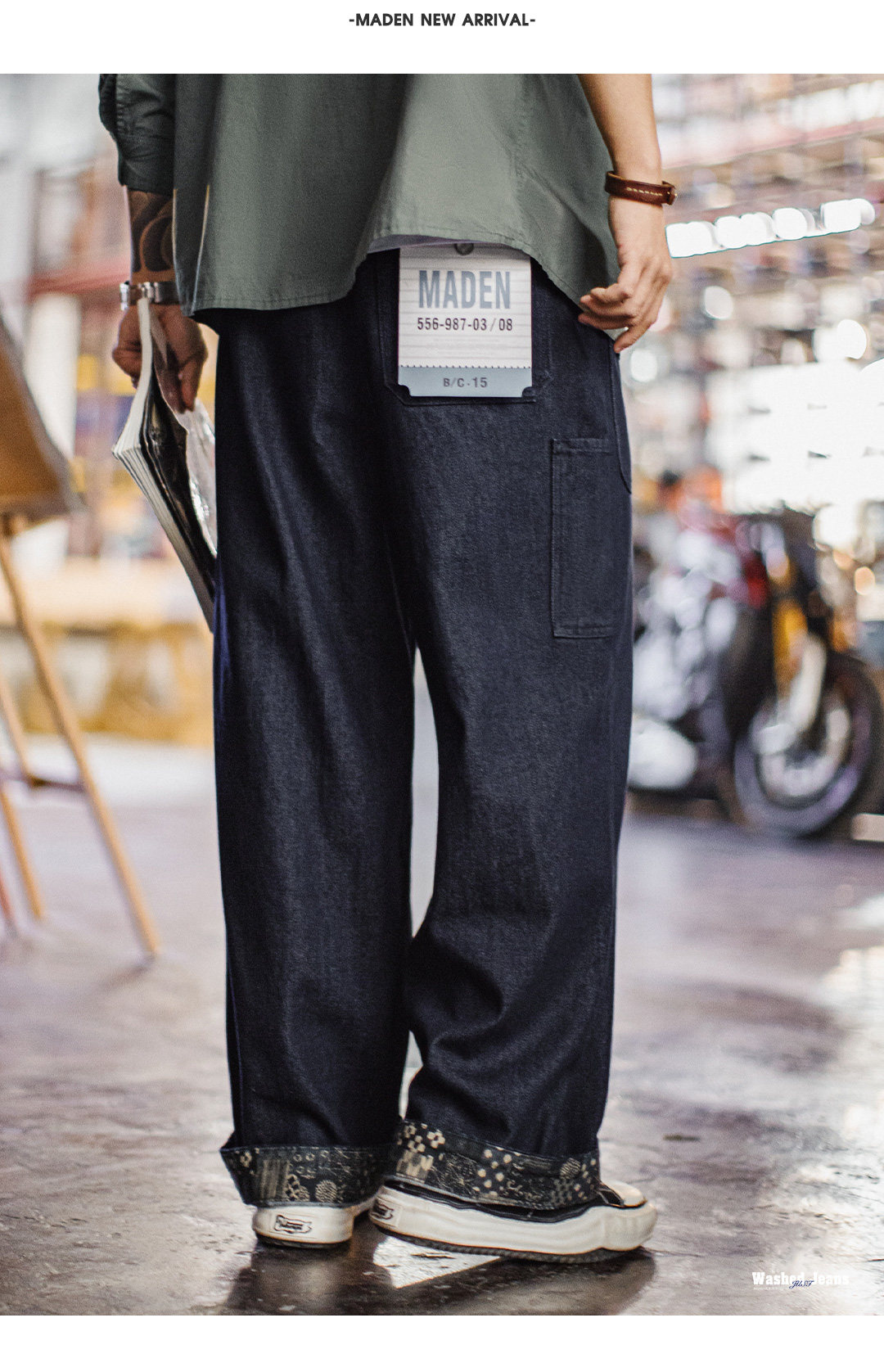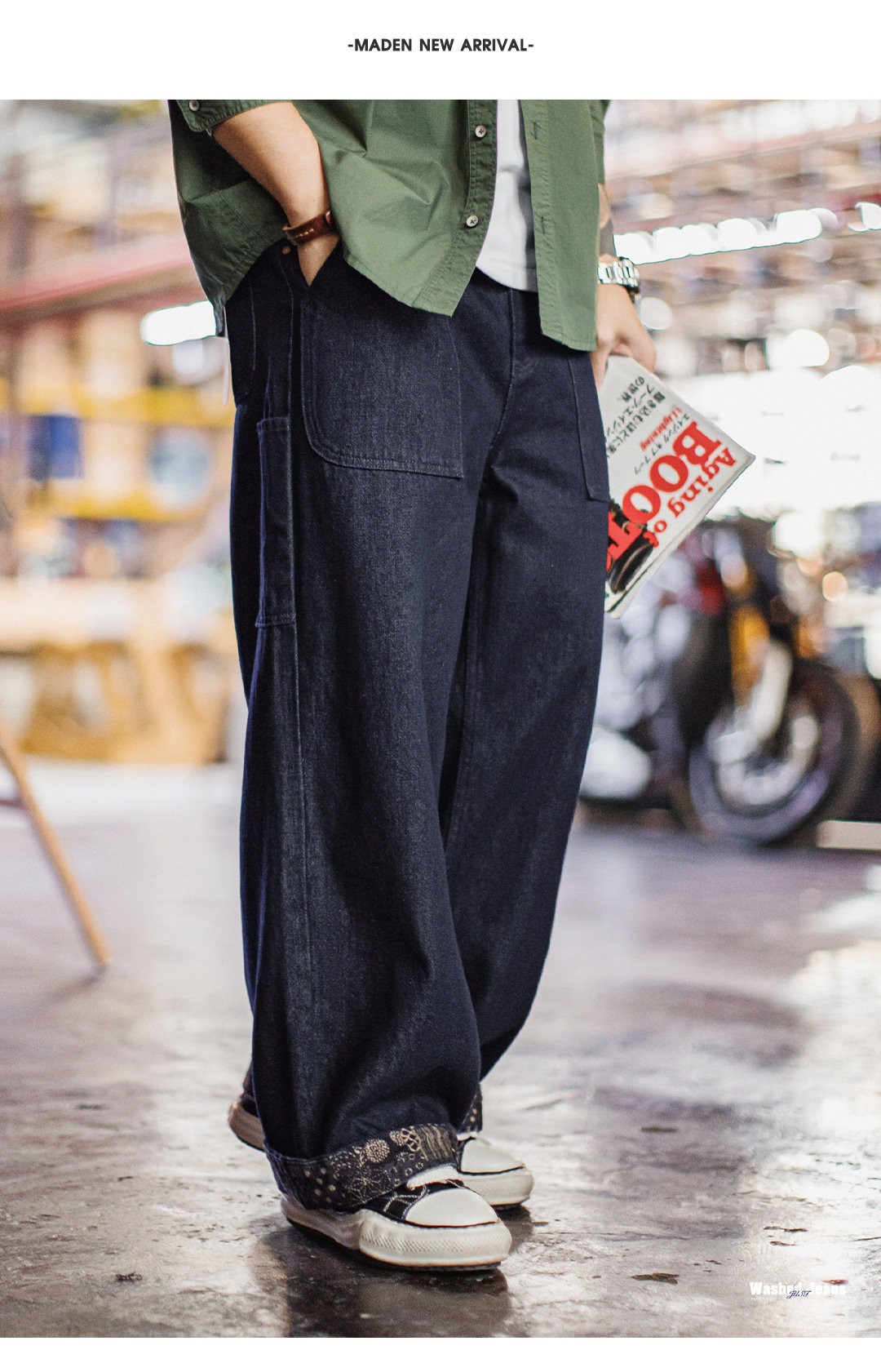 马登工装美式古布水洗牛仔裤直筒BORO阔腿深蓝色宽松休闲裤子男春