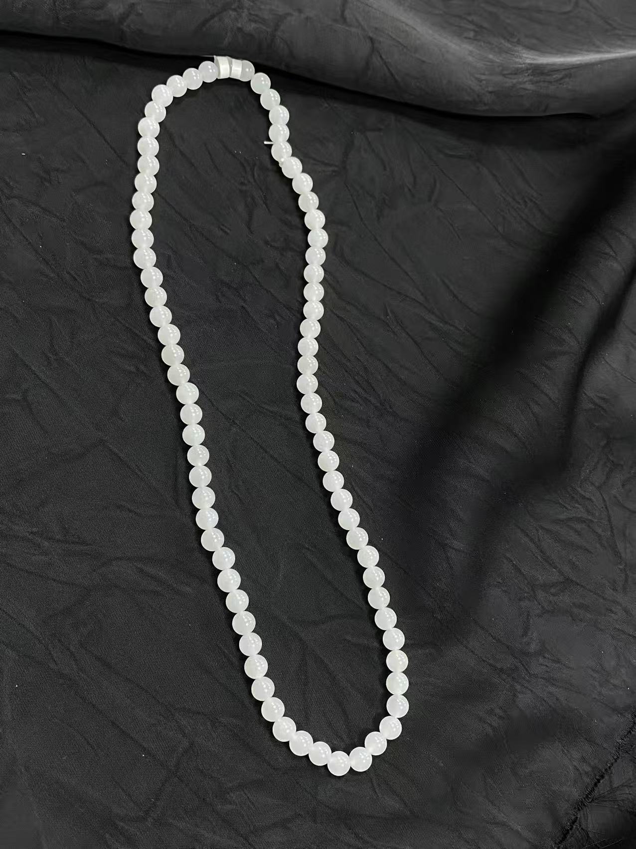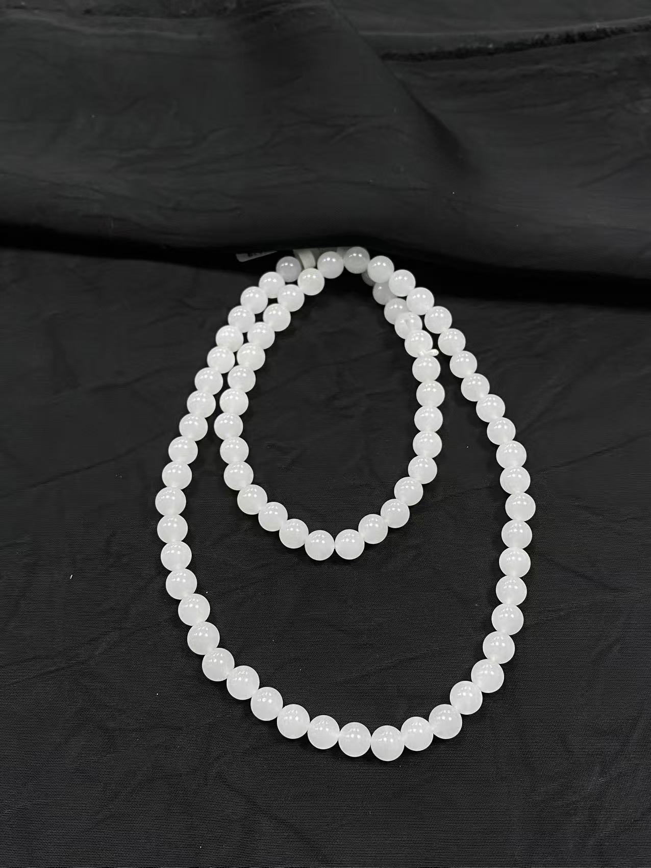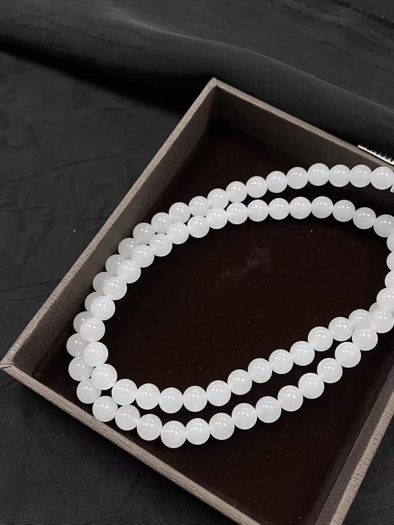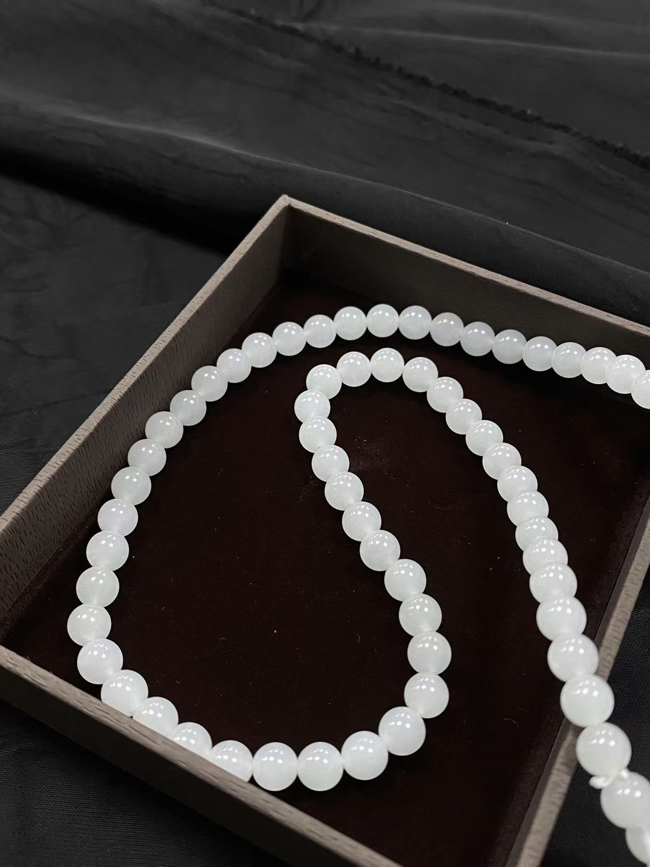 【于田产和田玉95料羊脂白卡6圆珠项链】规格6mm,出证书,发货1~五天,48小时鉴赏期