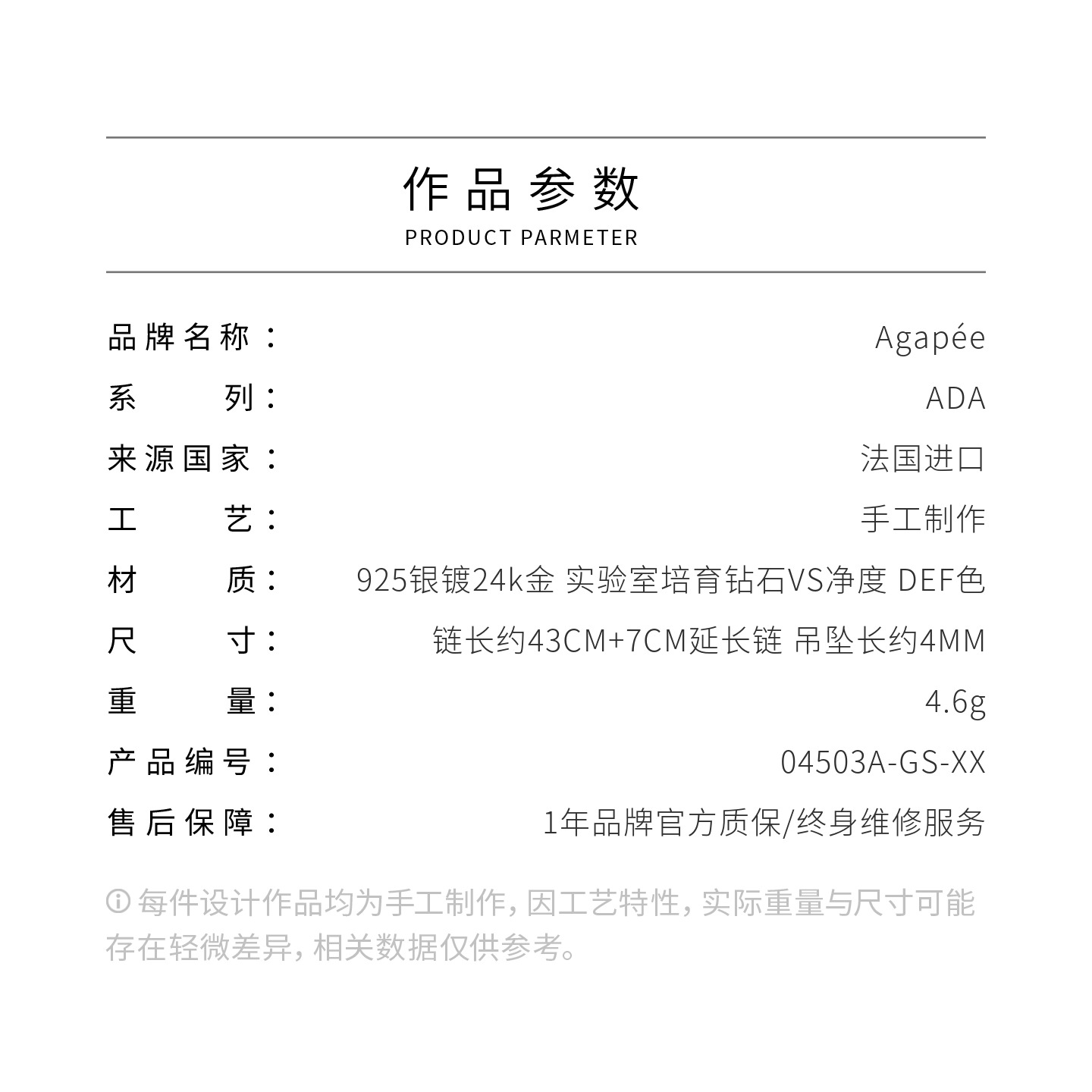 北京仓|Agapee-ADA-金色 不规则 钻石 吊坠 项链[法国设计师]