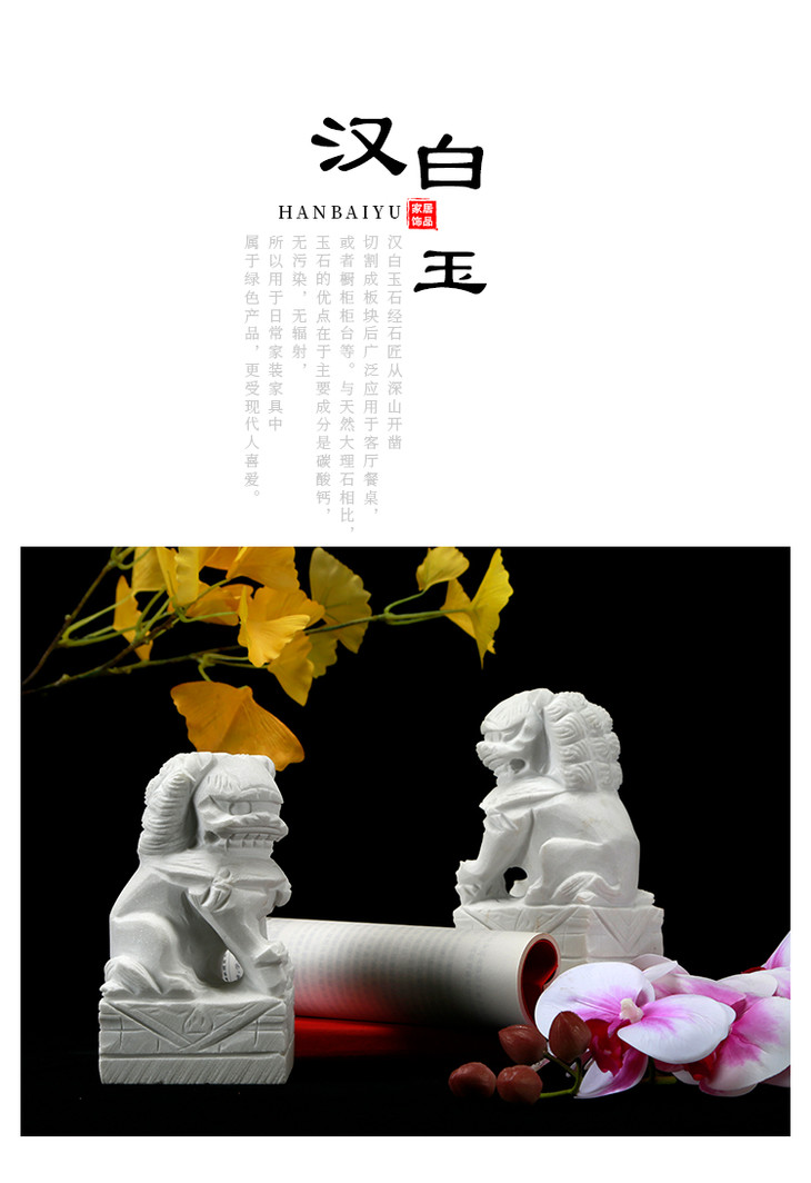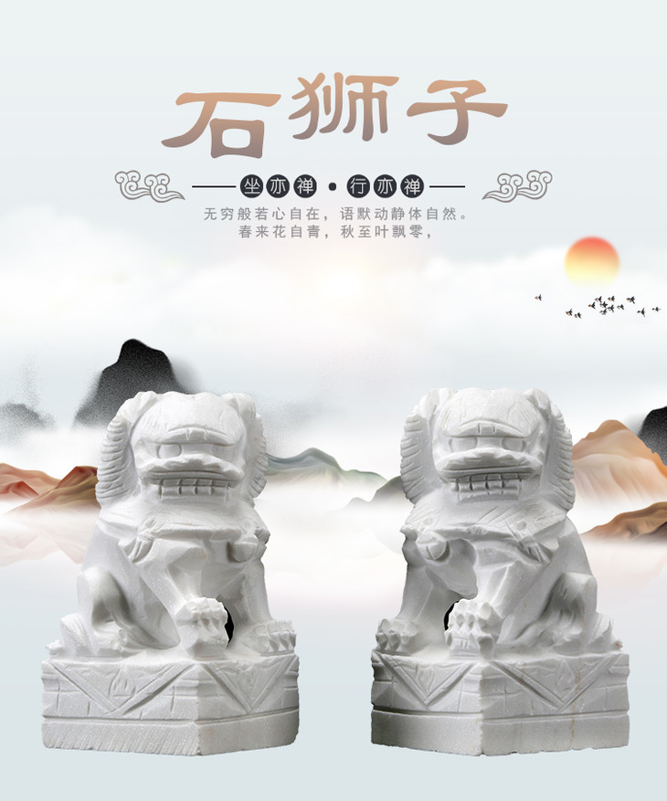 石狮子软装饰品汉白玉石头摆件复古摆件