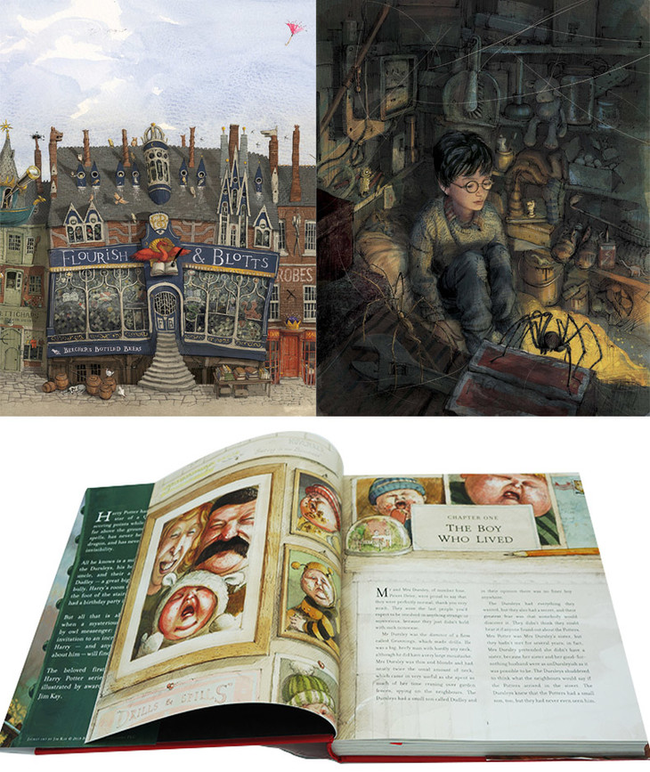 Harry Potter and the Philosopher’s Stone《哈利波特与魔法石》的插画版于2015年发行,全书均为全彩色印刷,插画师Jim Kay用油画、蜡笔、水彩、铅笔等绘画技巧创作了115多幅插画,巨细无遗地描绘了罗琳笔下的那个承载了无数感动、欢笑与泪水的故事。