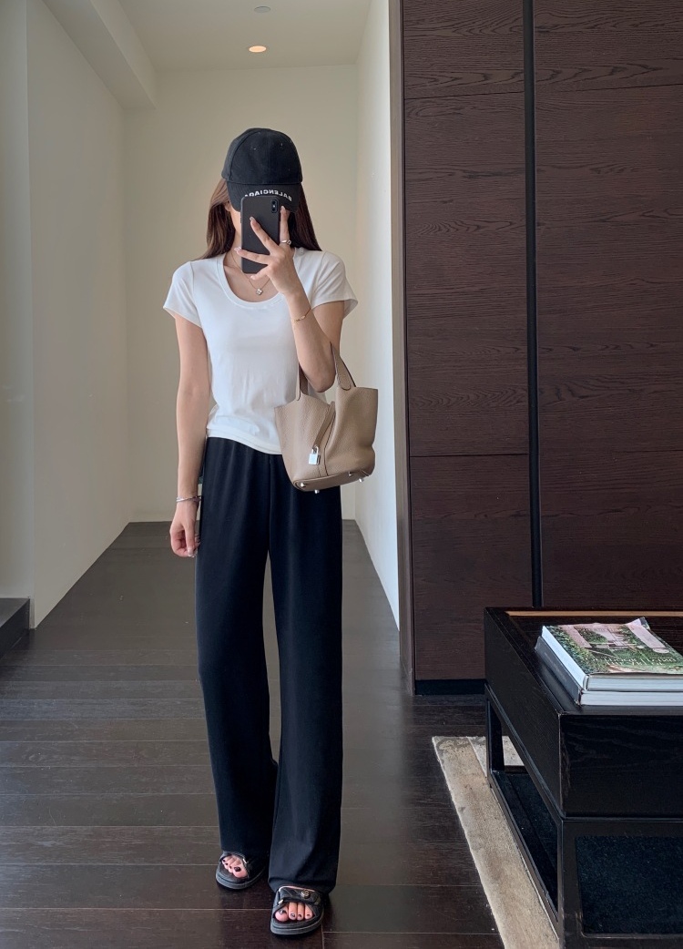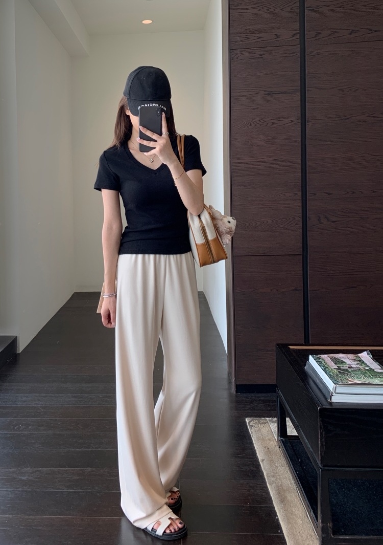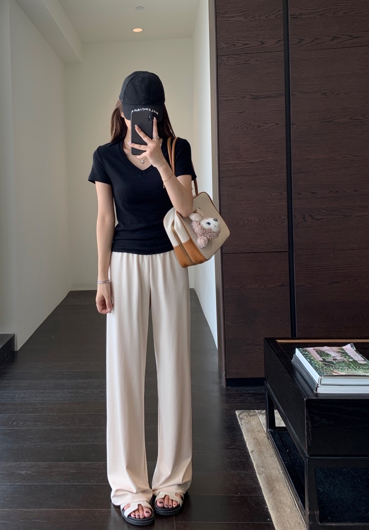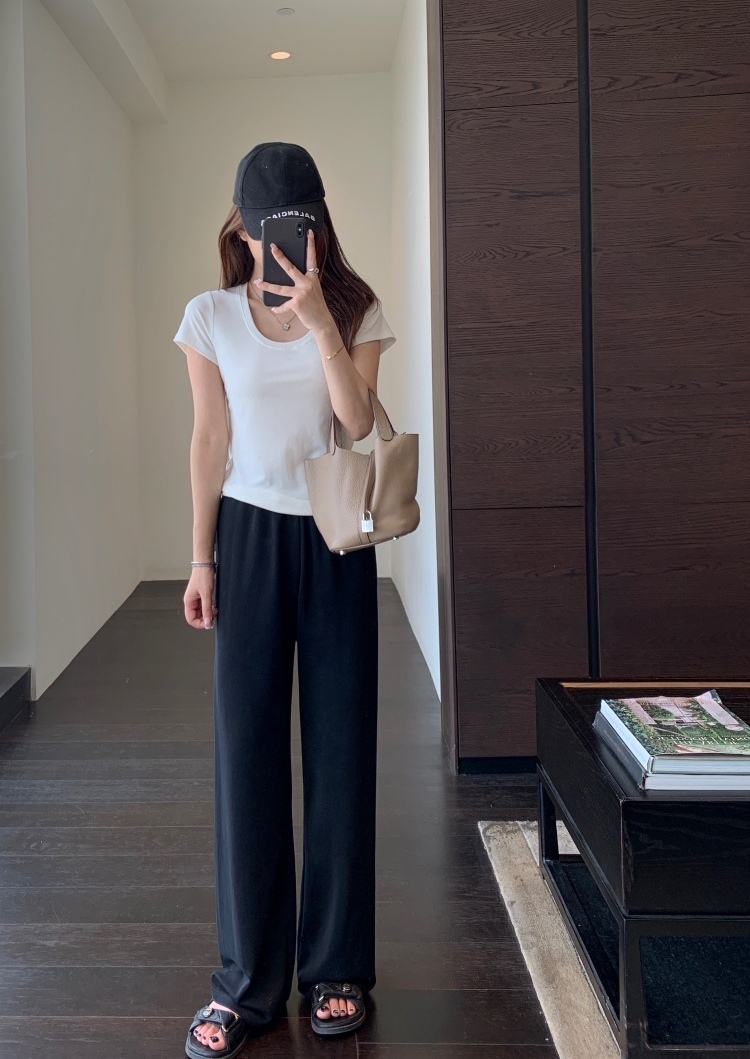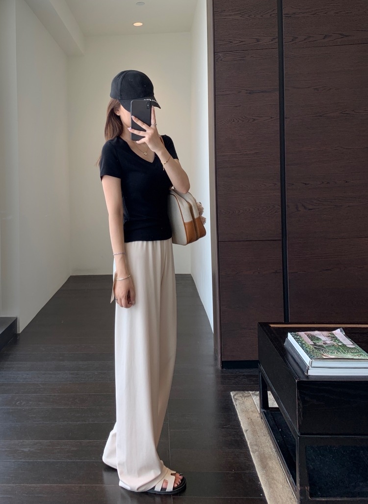 简约流畅线条,没有过多的修饰却自成一派裤型微宽松,恰到好处地勾勒出腿部线条。