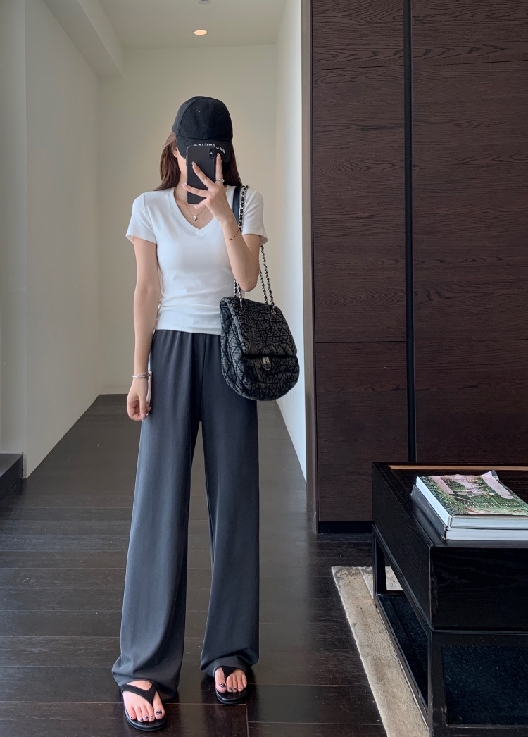 柔飒兼备一片式剪裁无侧缝直筒裤整件裤型特别流畅,一片式的剪裁。