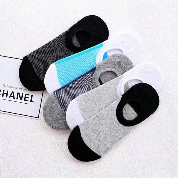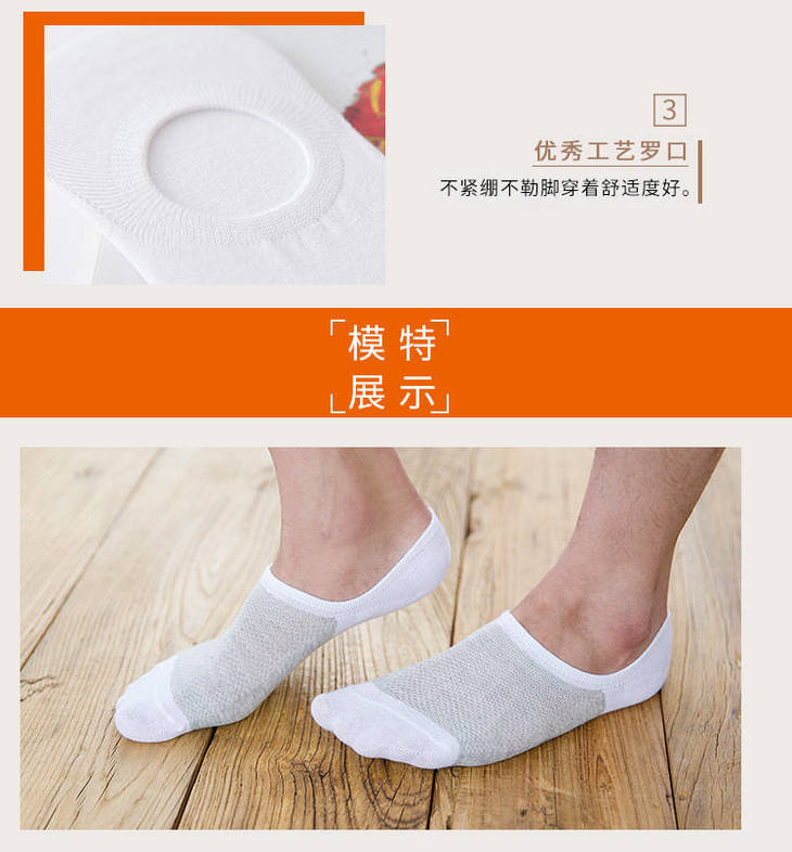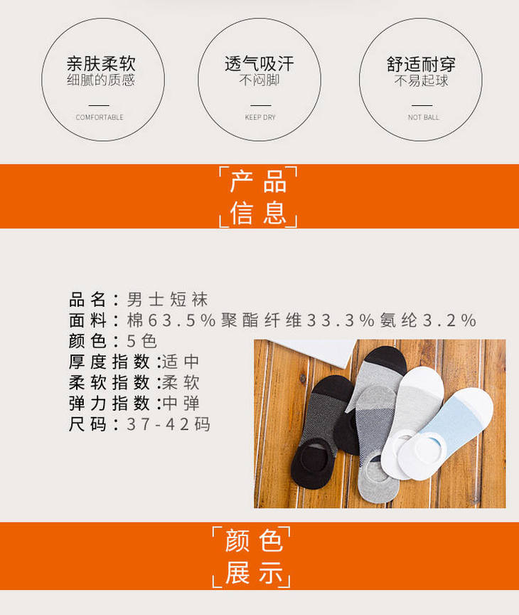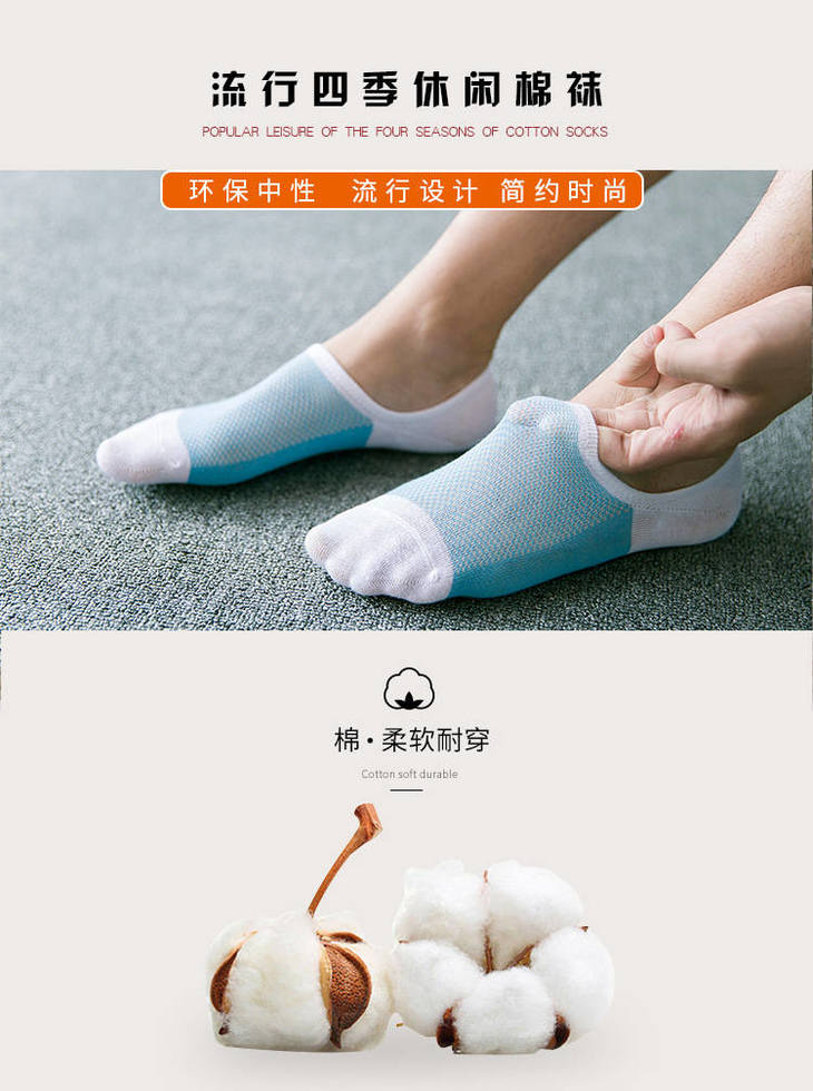 【5双装】夏季棉质硅胶透气男士隐形船袜 吸汗防臭棉网袜