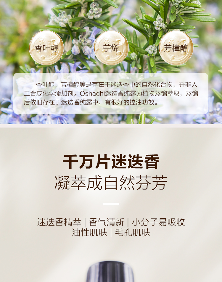 Oshadhi德国O家 马鞭草酮迷迭香纯露 细致毛孔 净化 控油 花水爽肤水化妆品