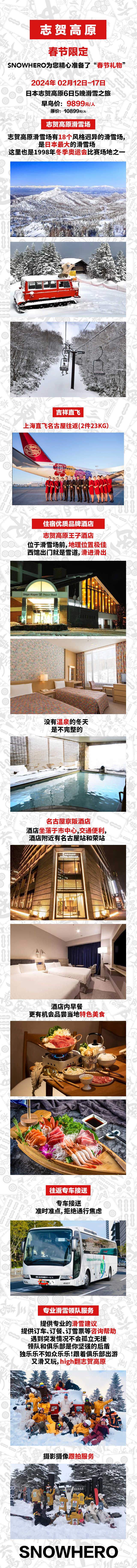 志高原贺有大大小小18个滑雪区组成,可以每天畅滑各地的日本粉雪,也可每天享受酒店天然温泉放松身心。 领队会带领大家一起滑雪,组织免费滑雪公开课。白天除了滑雪,也可以一起结伴出游,体验当地风情,晚上俱乐部会组织大家一起聚餐、活动。 |