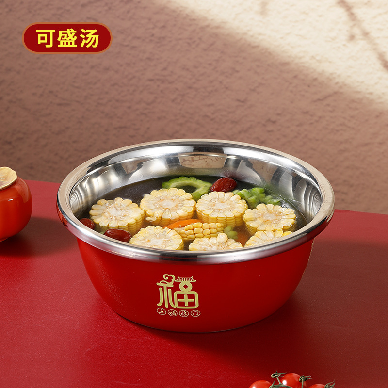 【国潮五福!聚宝盆】可放微波炉,沥碗、盛汤、盛水果、盛蔬菜!2025蛇年多用盆家用不锈钢盆
