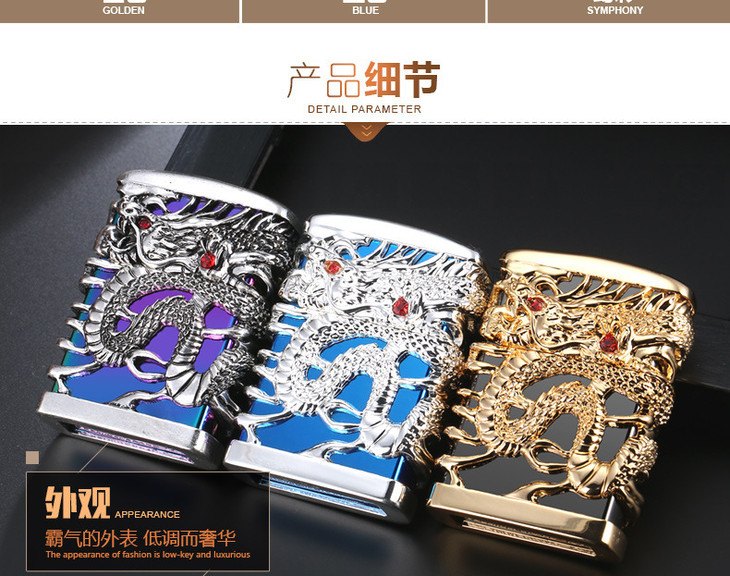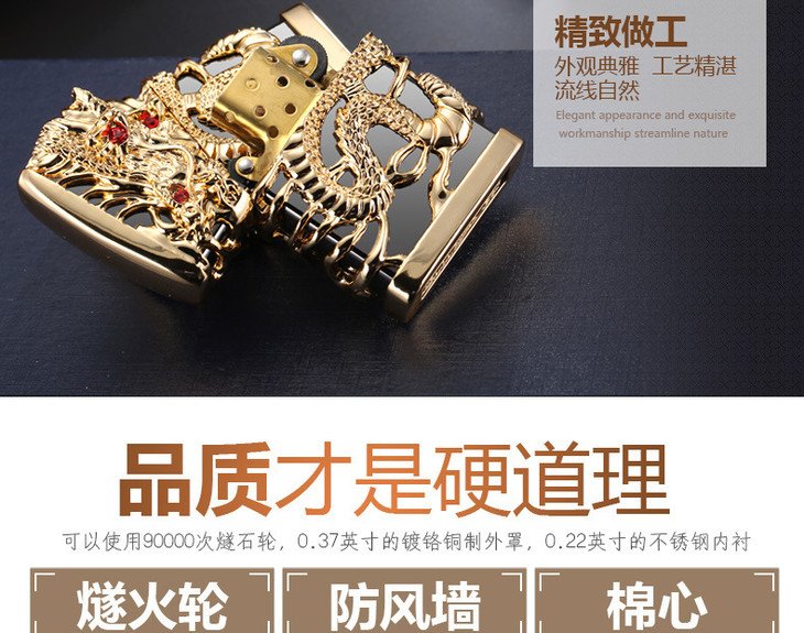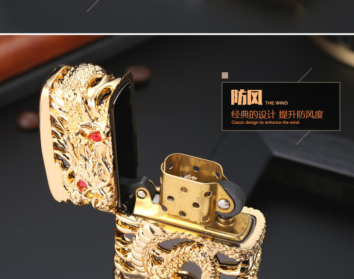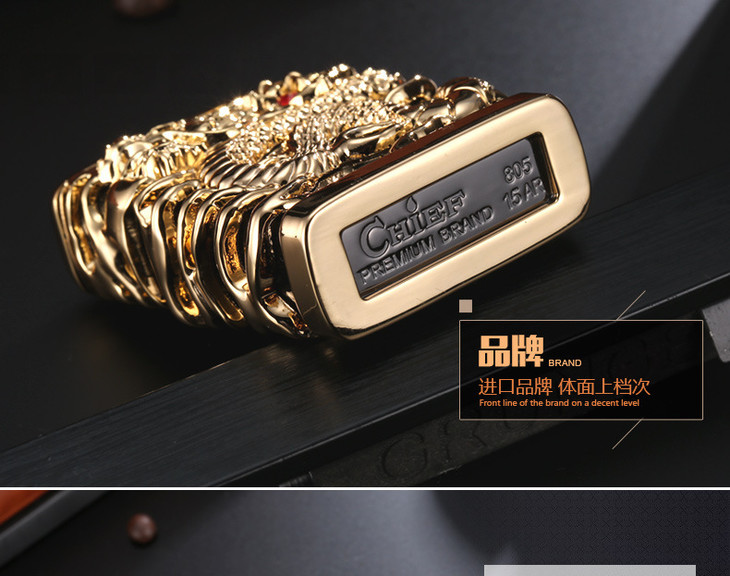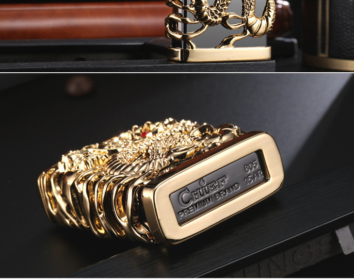 【打火机】。CHIEF首领原装铜壳煤油打火机个性雕刻镂空神龙
