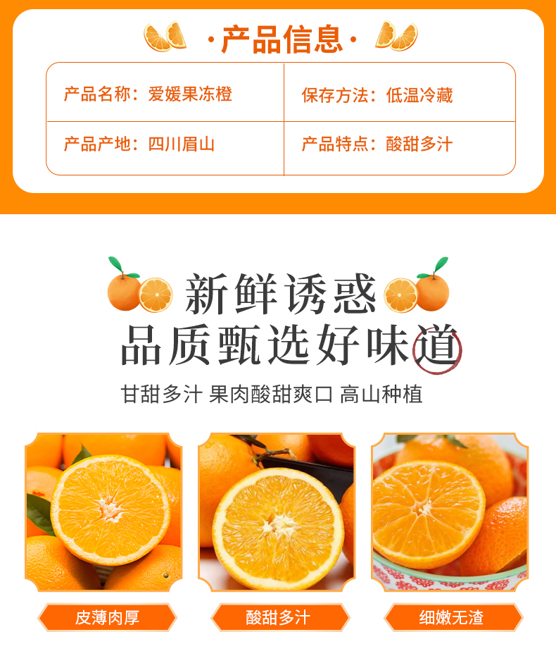 【爱媛果冻橙】蜀中橘橙 细嫩爆汁酸甜适口甜蜜无渣果冻橙4.5斤/8斤装