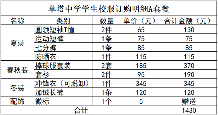 草塔中学学生校服订购明细A套餐 商品缩略图0 草塔中学学生校服订购明细A套餐 商品缩略图1