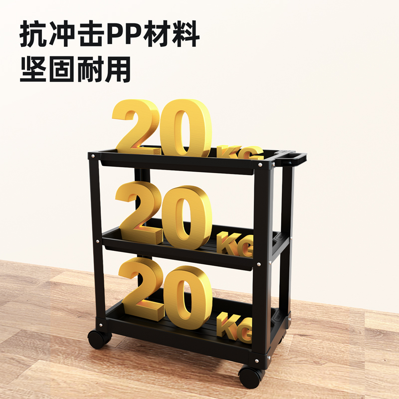 得力塑料三层工具车(黑)