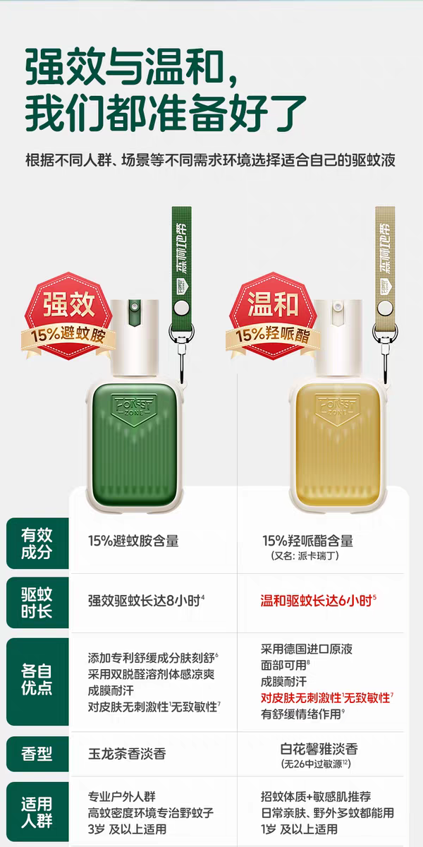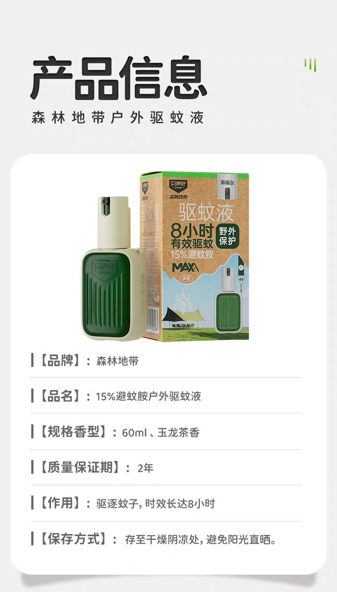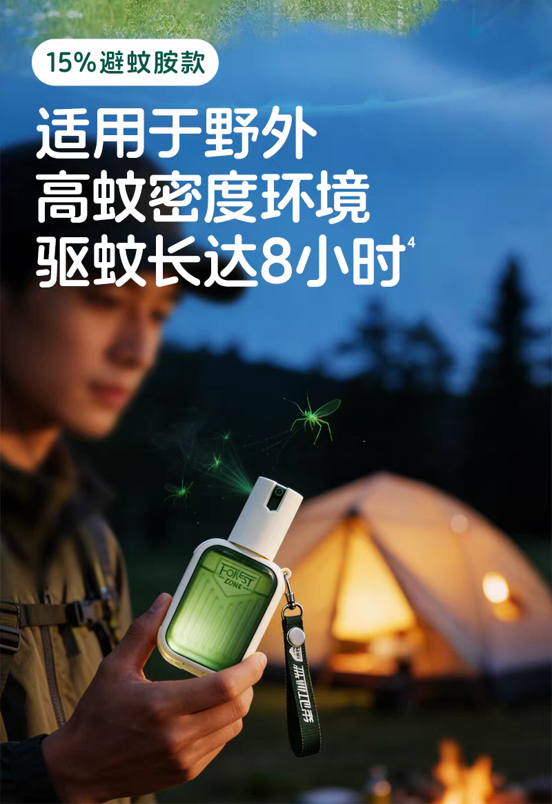 森林地带 驱蚊液喷雾 户外专用 持续6小时防蚊 15%避蚊胺肩章款可倒喷设计