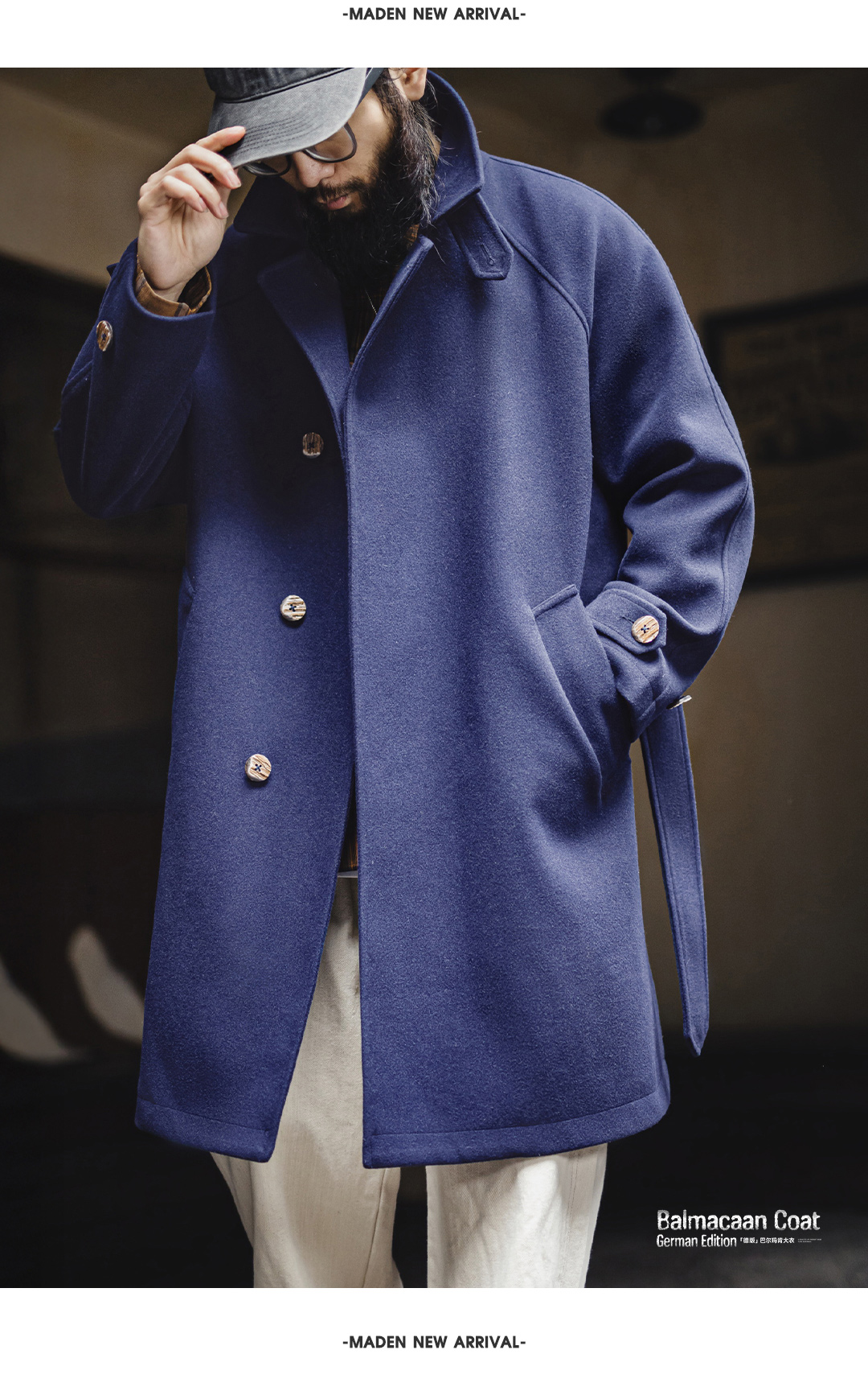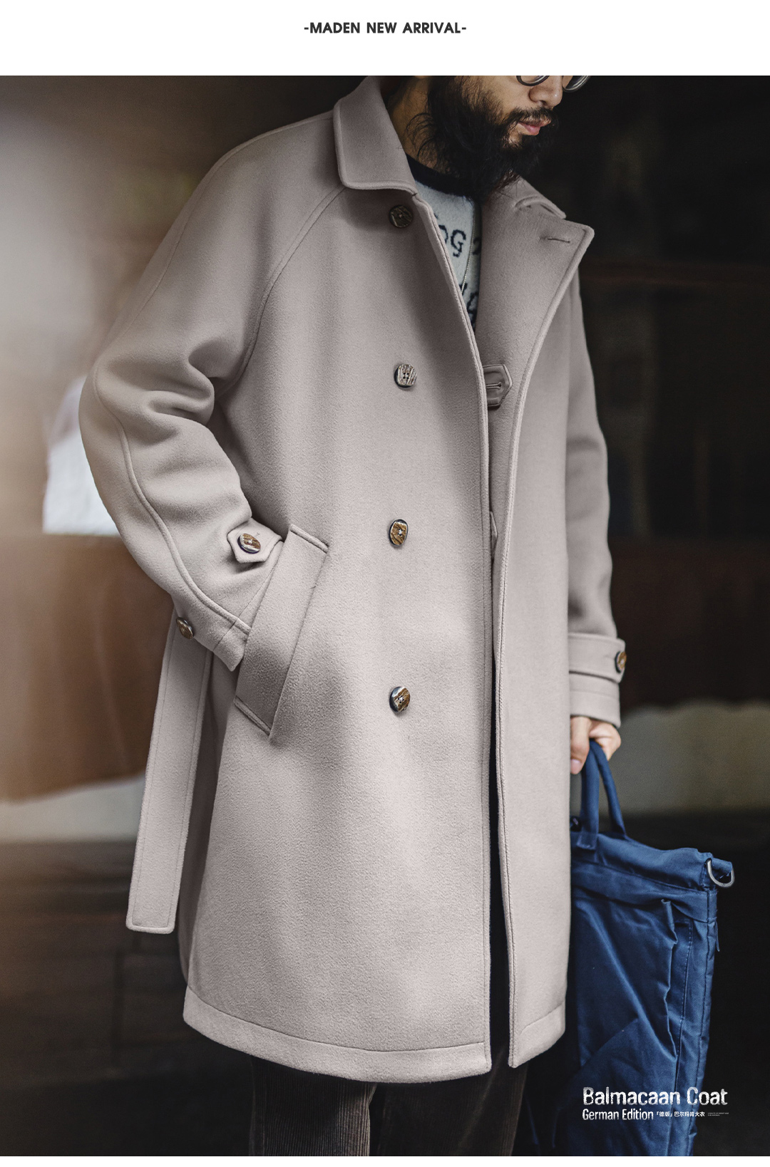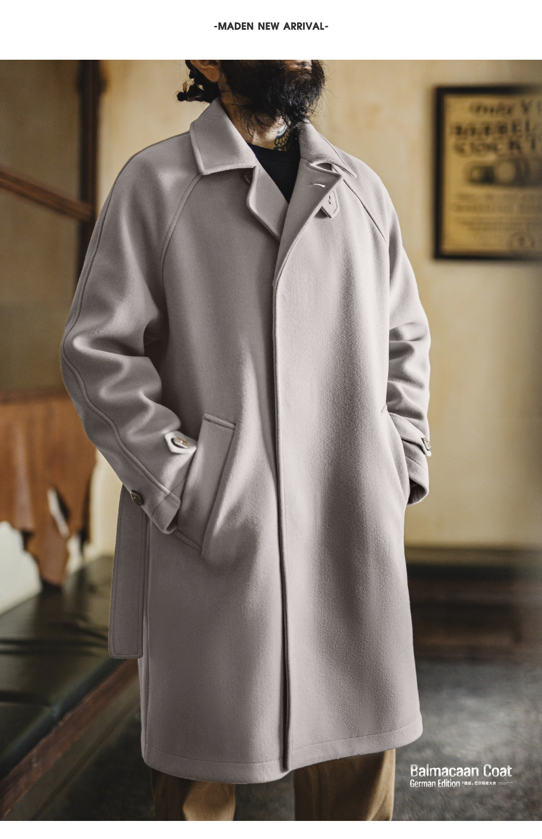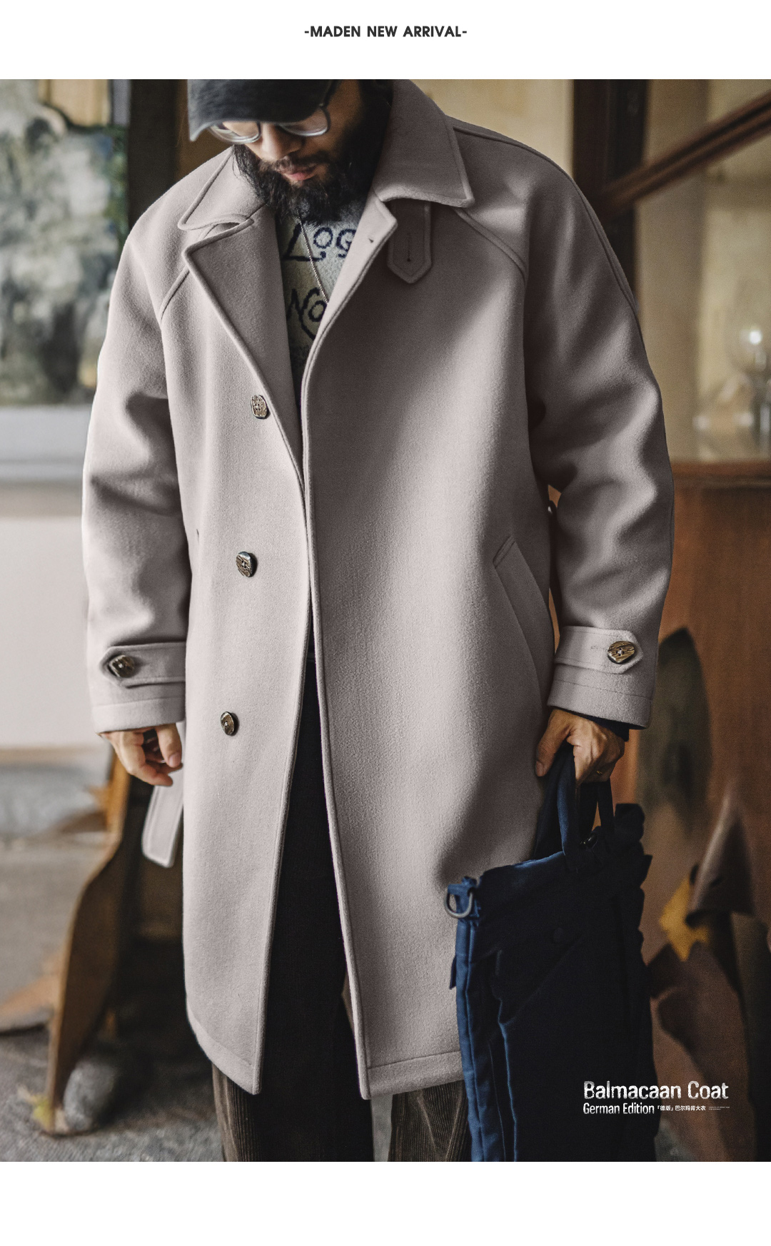马登工装德式灰色巴尔玛肯风衣中长款战壕大衣廓形英伦外套男春