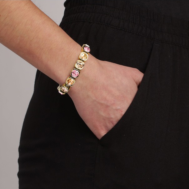 订购6周到|Dyrberg Kern-CONIAN-水晶 蔷薇色 桃色 手链(金色)[丹麦设计师]