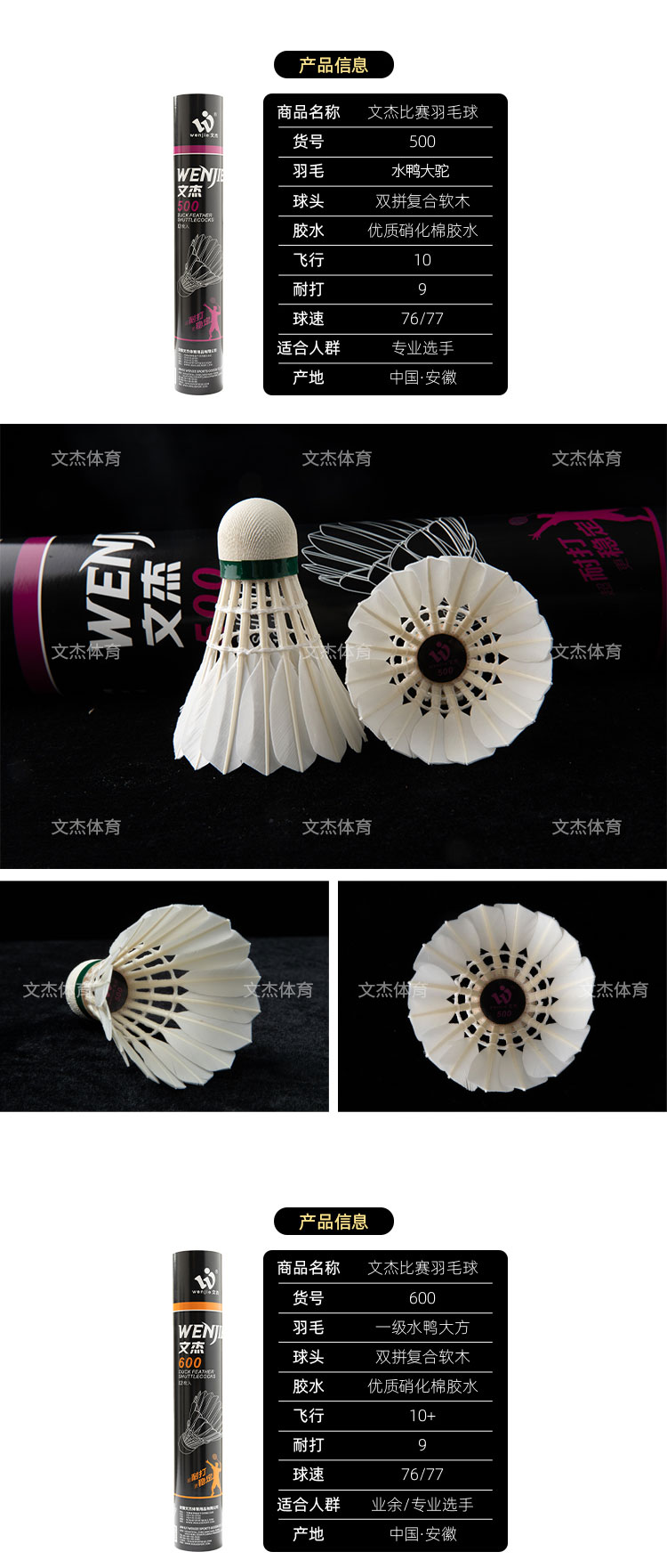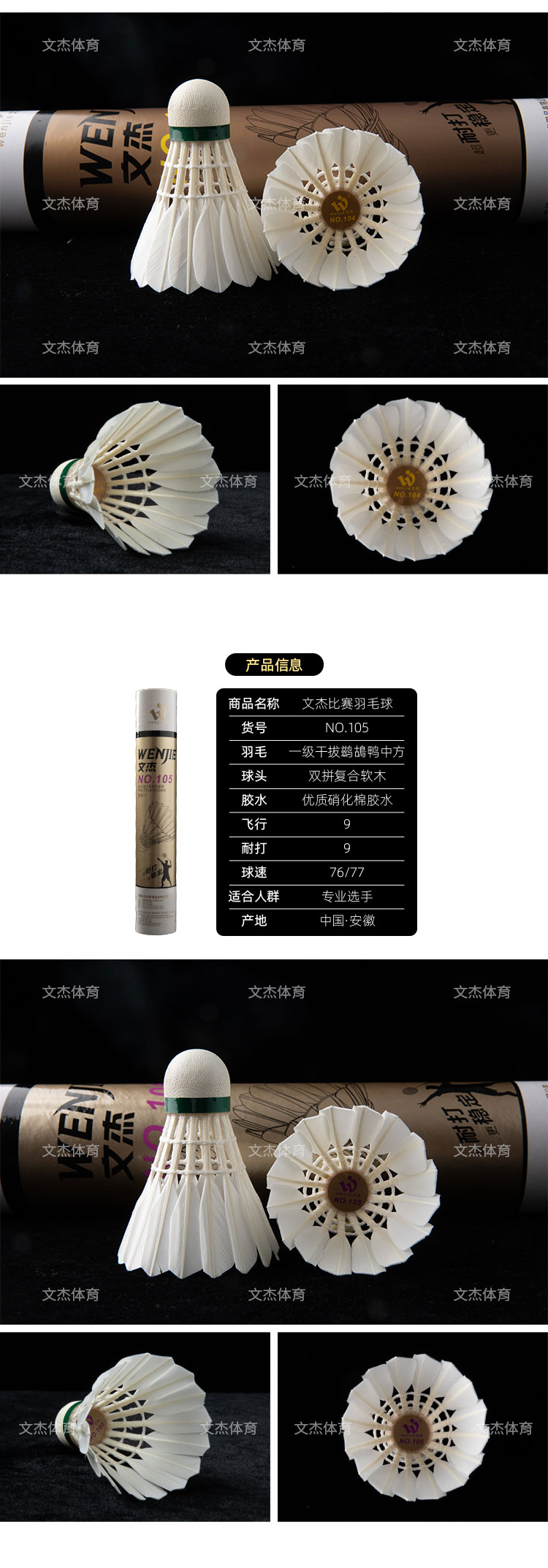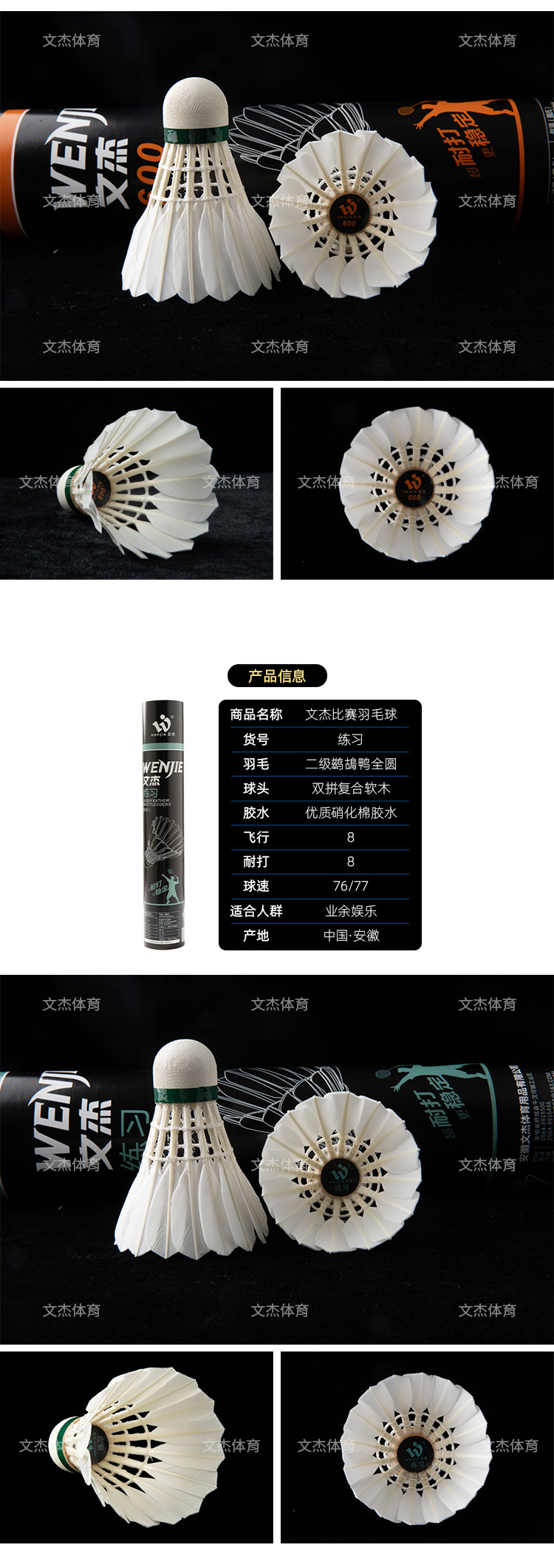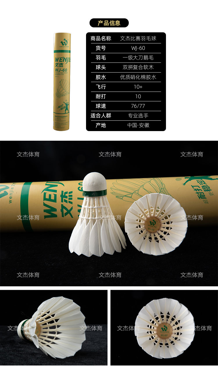 文杰 羽毛球 比赛用球 特级干拔鷀鸪鸭毛