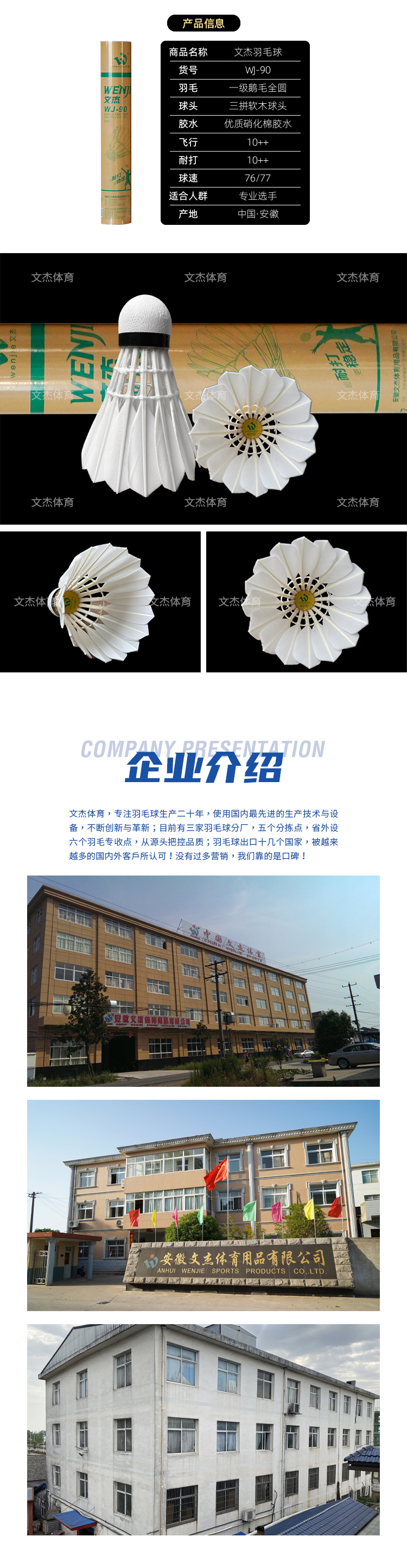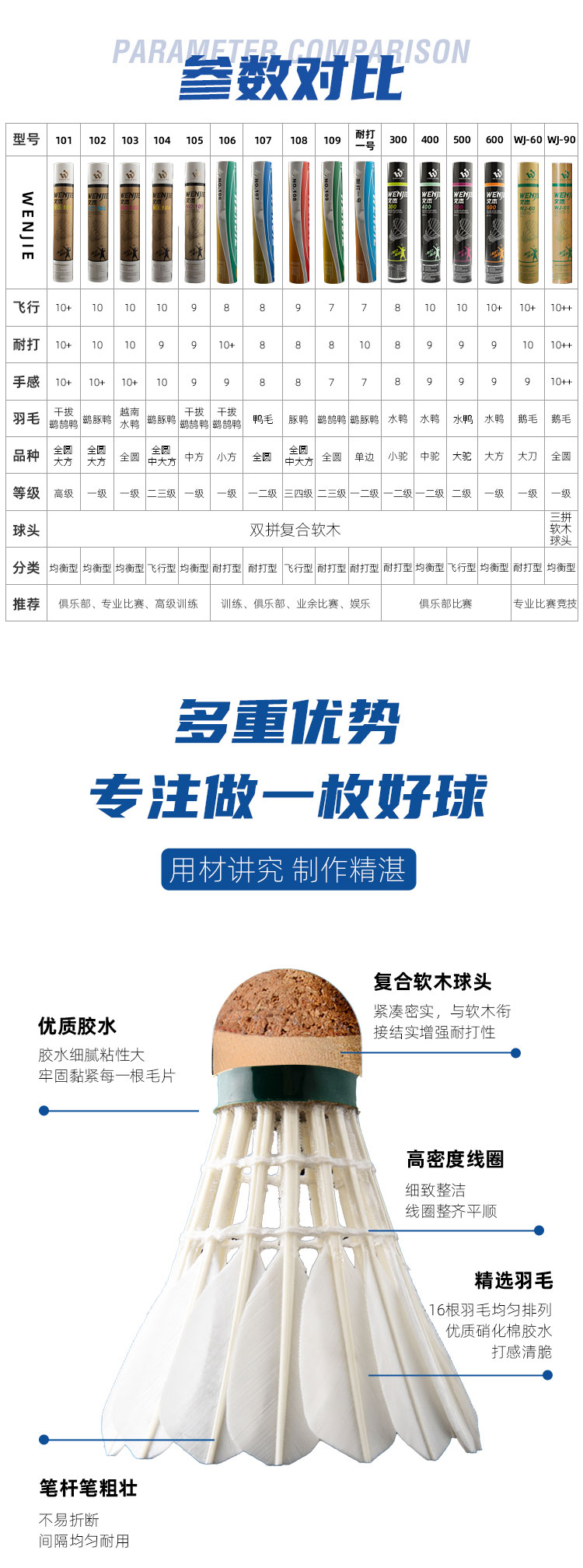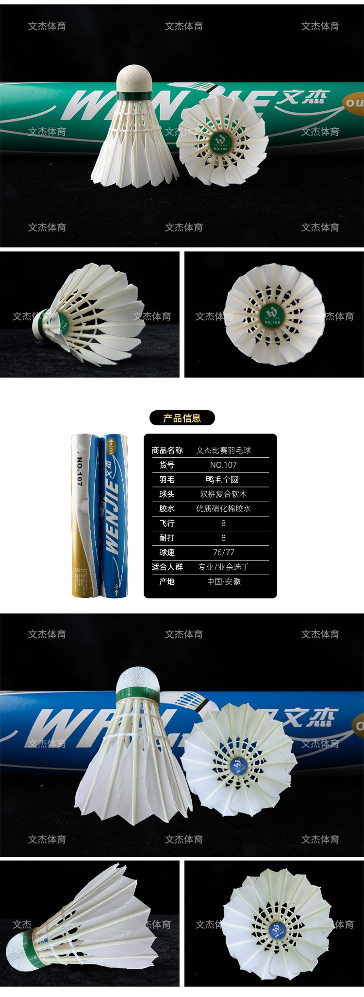 文杰 羽毛球 比赛用球 特级干拔鷀鸪鸭毛