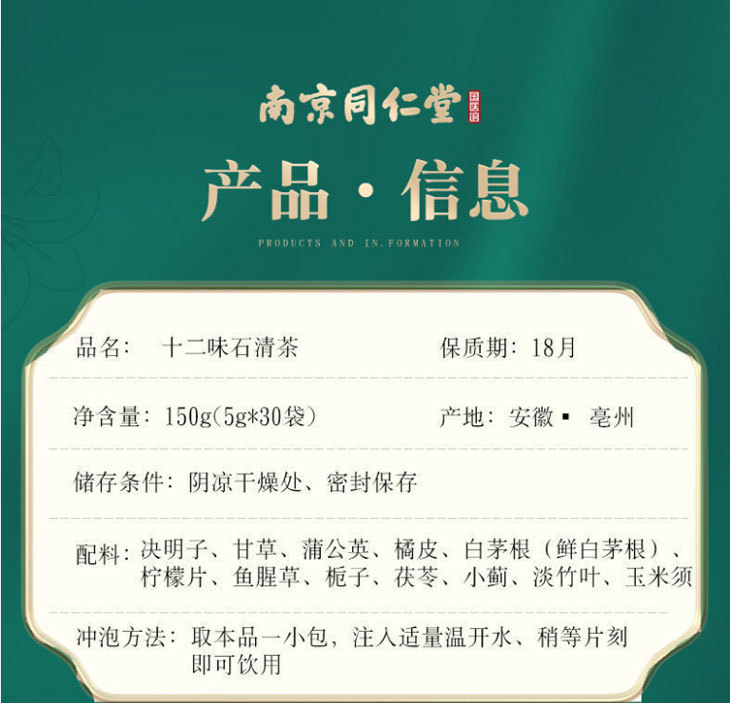 【润“石”细无声】石清茶南京同仁堂十二味石清茶早上一包晚上一包石清茶玉米须决明子茶