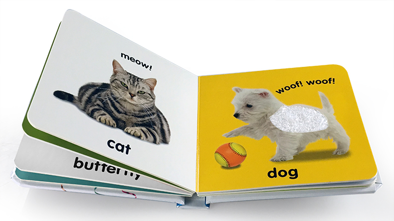 Baby Touch and Feel系列,主打触摸书概念,书内设有专门的触摸区(由各种不同仿真材质制作),通过用手去触摸书中的各种事物,带领宝宝用手去感知周围世界,不仅帮助他们理解、辨别“光滑”、“柔软”、“粗糙”、“干硬”等抽象概念,提升宝宝对各种事物的感知能力,还使得孩子的触觉变得更细腻、敏感,而多元灵敏的触觉探索则打通神经元、促进脑部发育和动作发展。同时,配以逼真的绘图,加快宝宝视觉和触觉的联合行动,使宝宝体验更真实,强化认知效果。