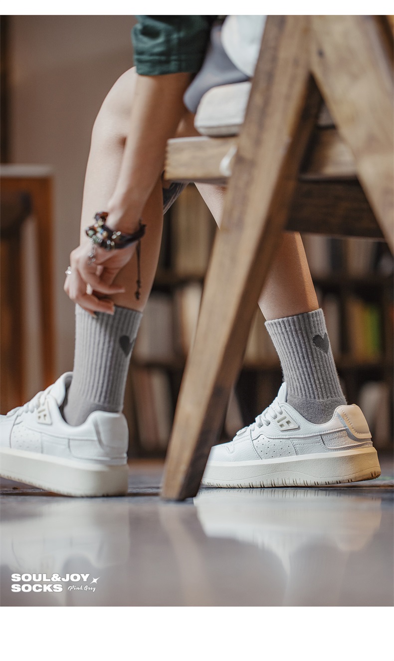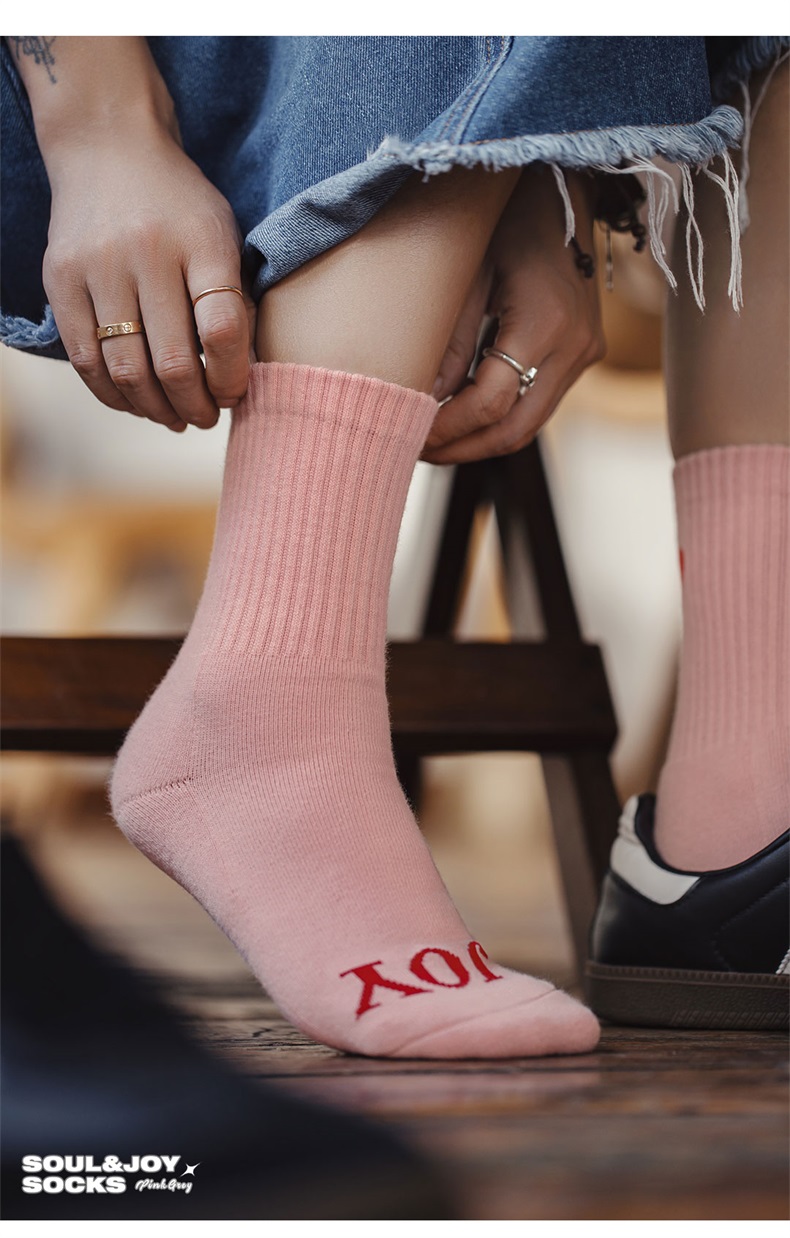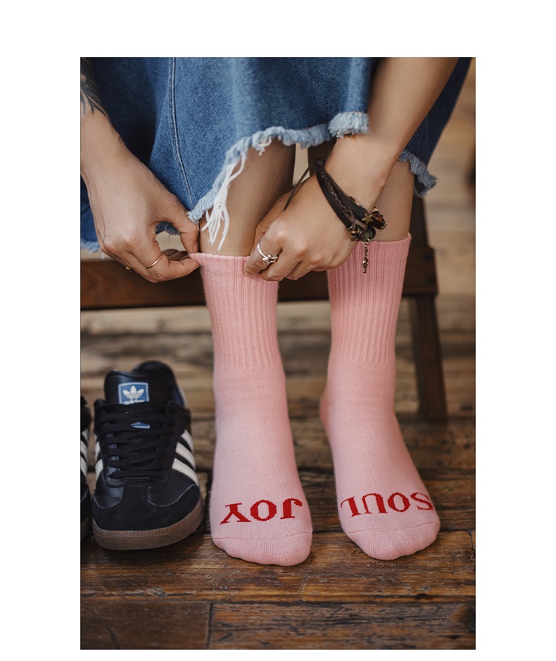 马登女装字母爱心中筒无骨袜女可爱竖条粗针运动防臭保暖长袜秋冬