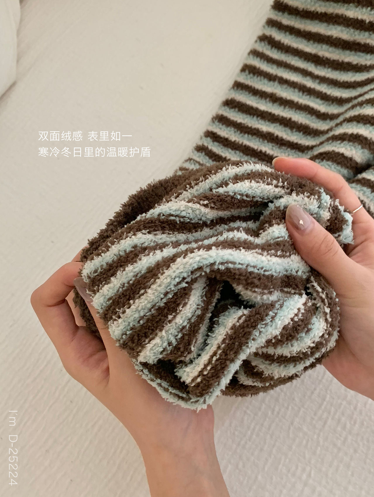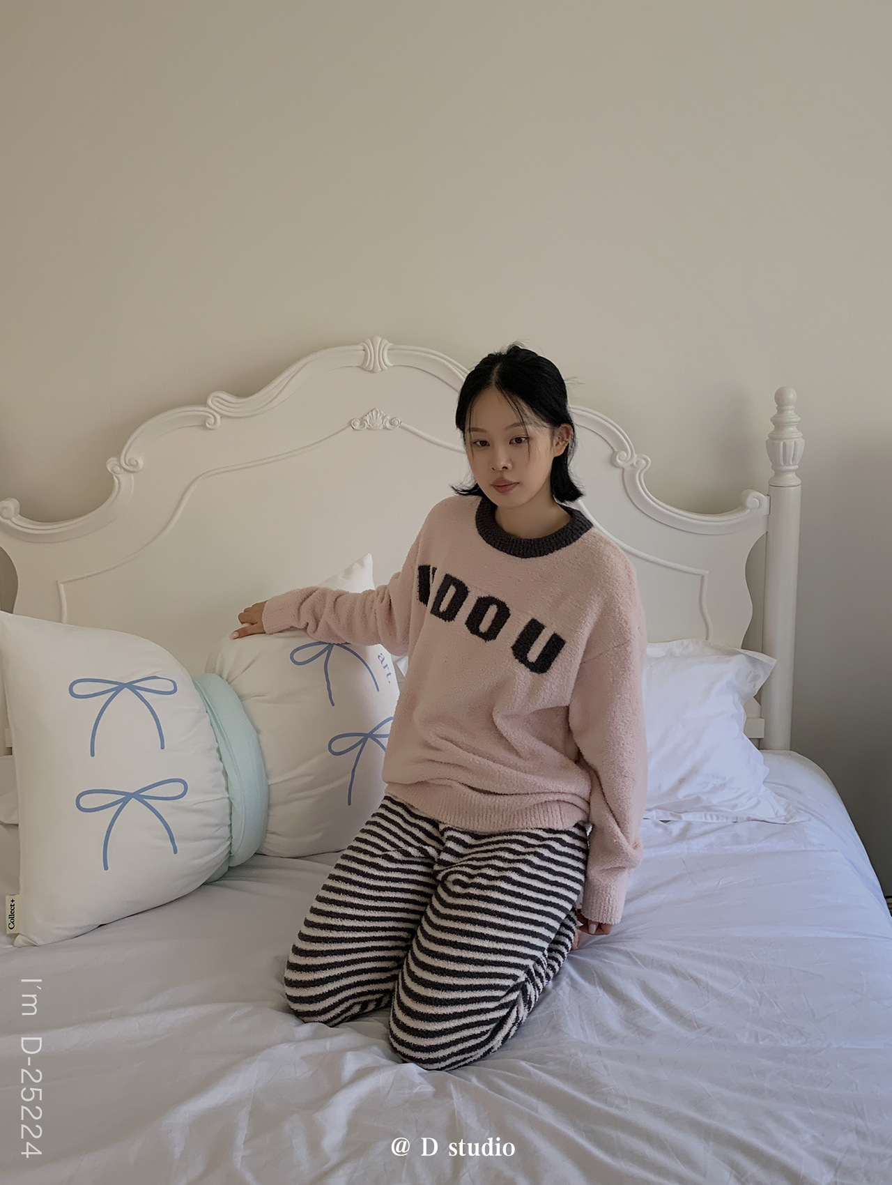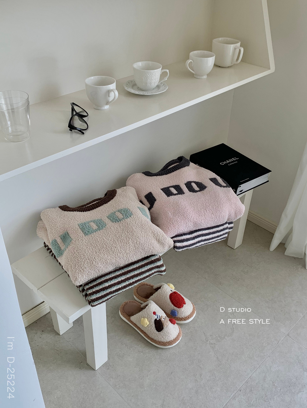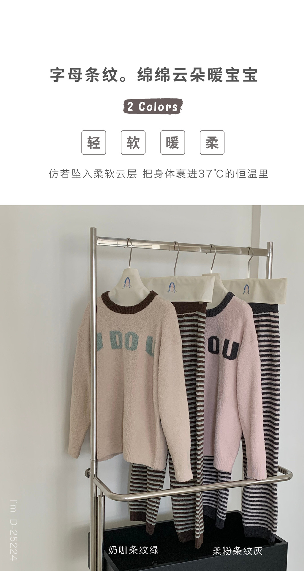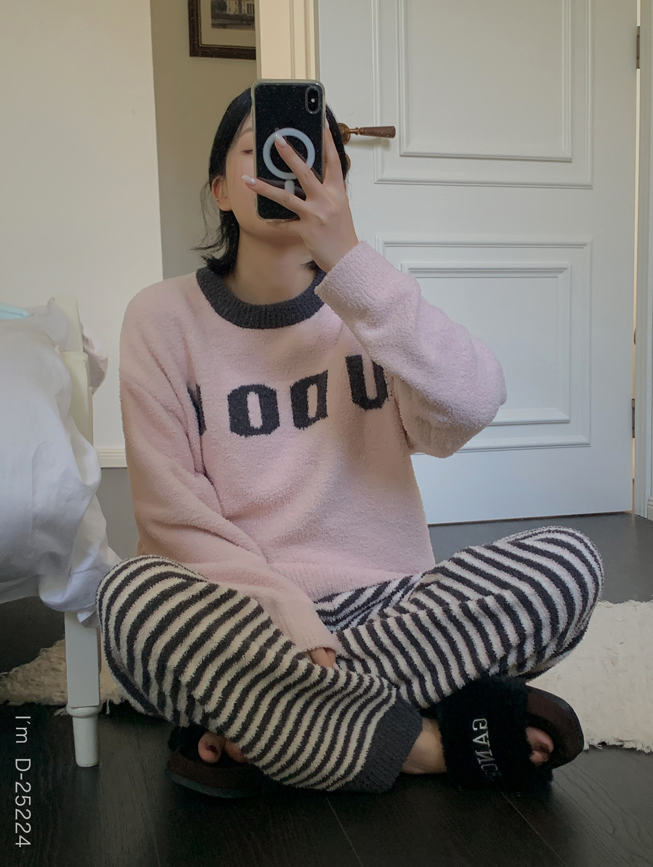 蓄热锁温~字母条纹秋冬加厚半边绒羽毛纱睡衣套装 可爱甜美家居服女