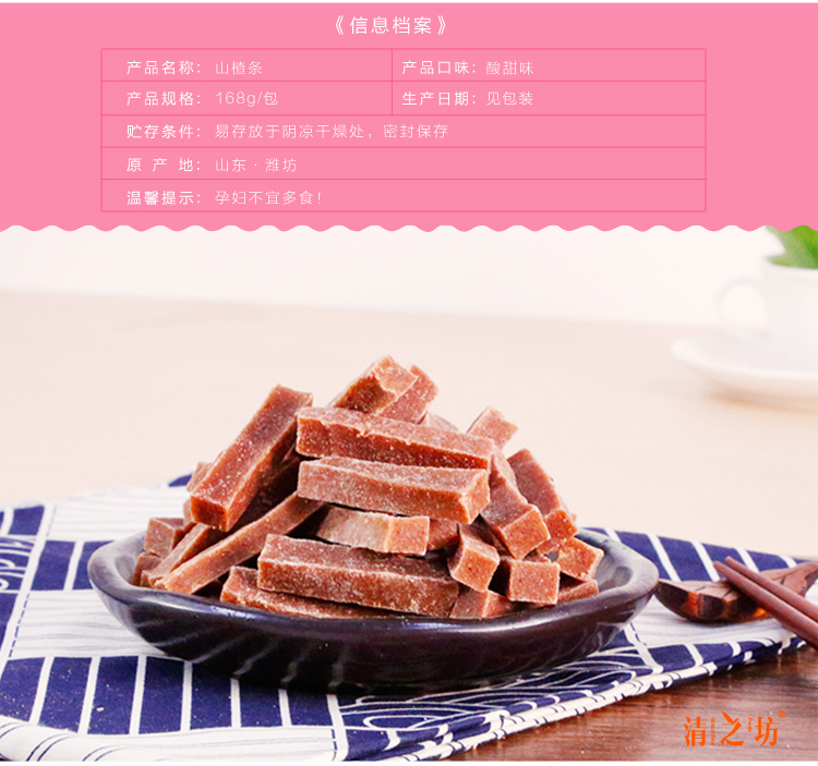 【备用】清之坊 山楂条168g袋装 酸甜可口 新鲜山楂山楂片蜜饯山楂条零食