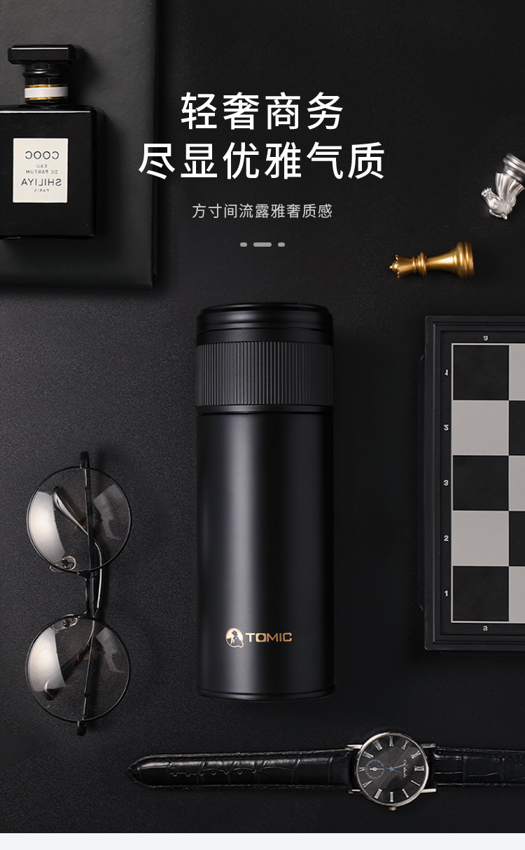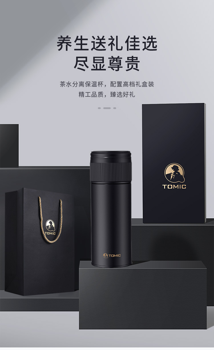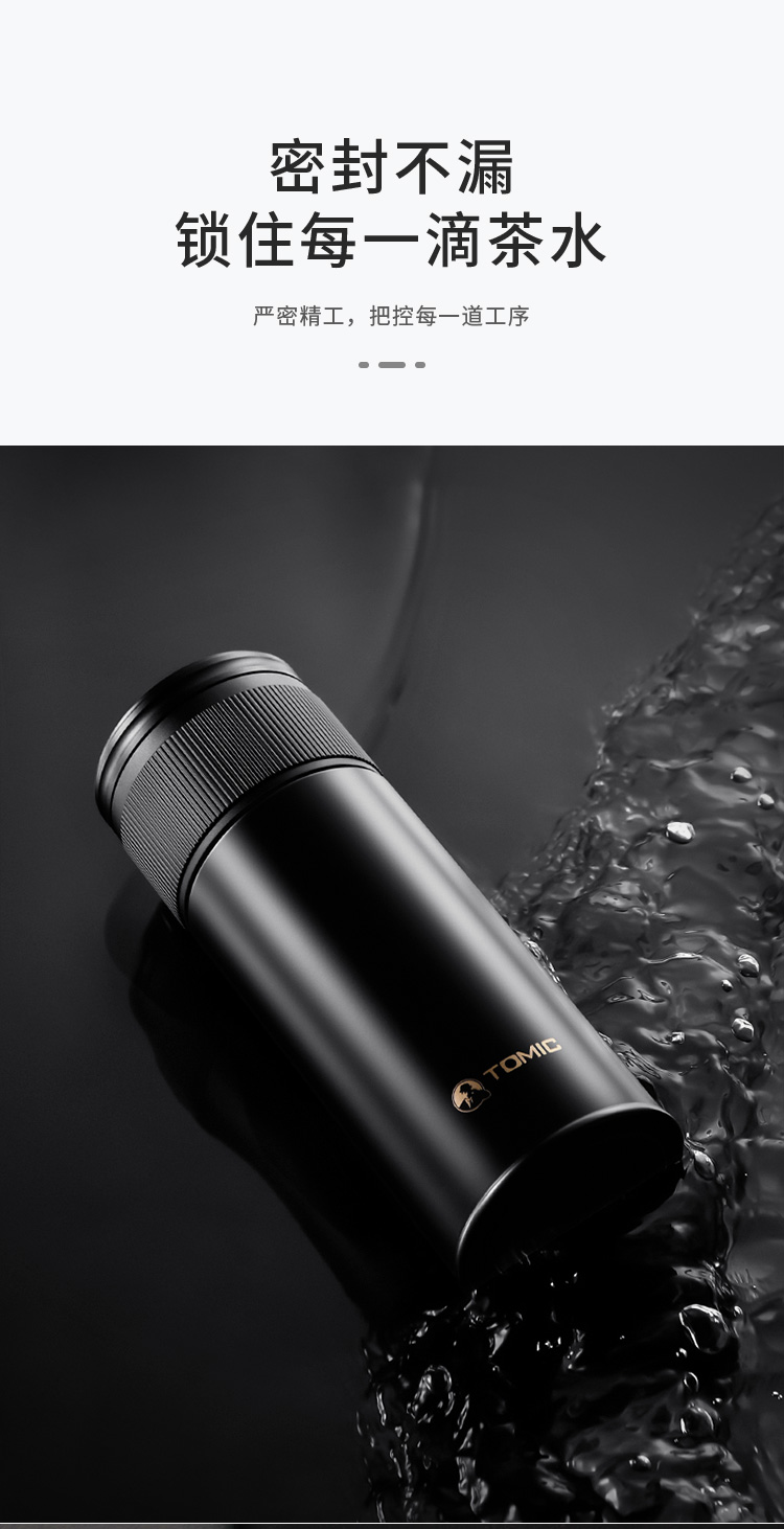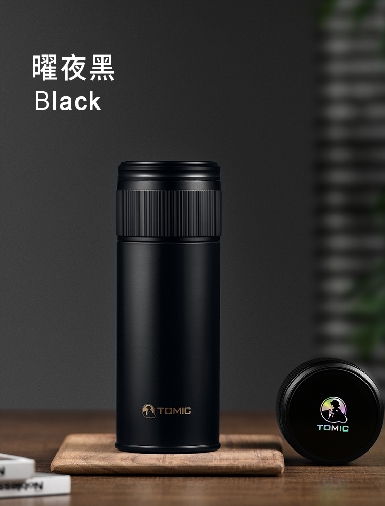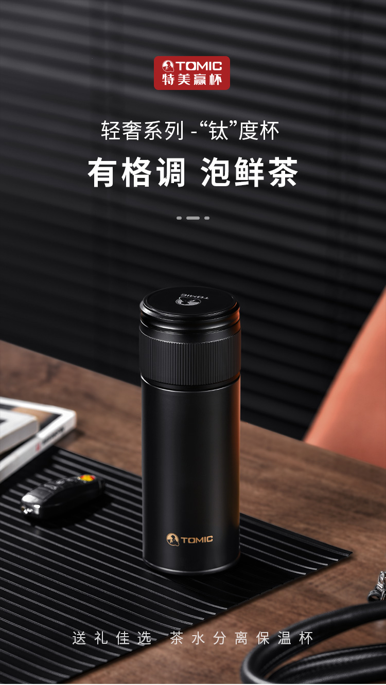 特美赢杯TOMIC保温杯茶水分离杯纯钛茶隔陶瓷内胆高档商务泡茶杯便携水杯男 黑色350ml