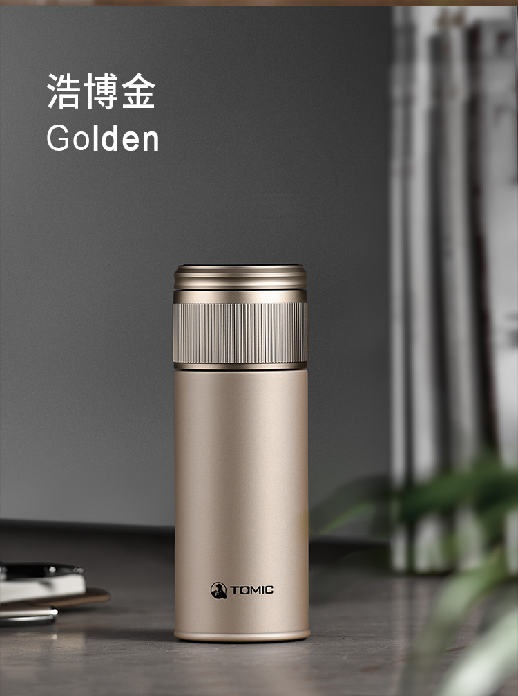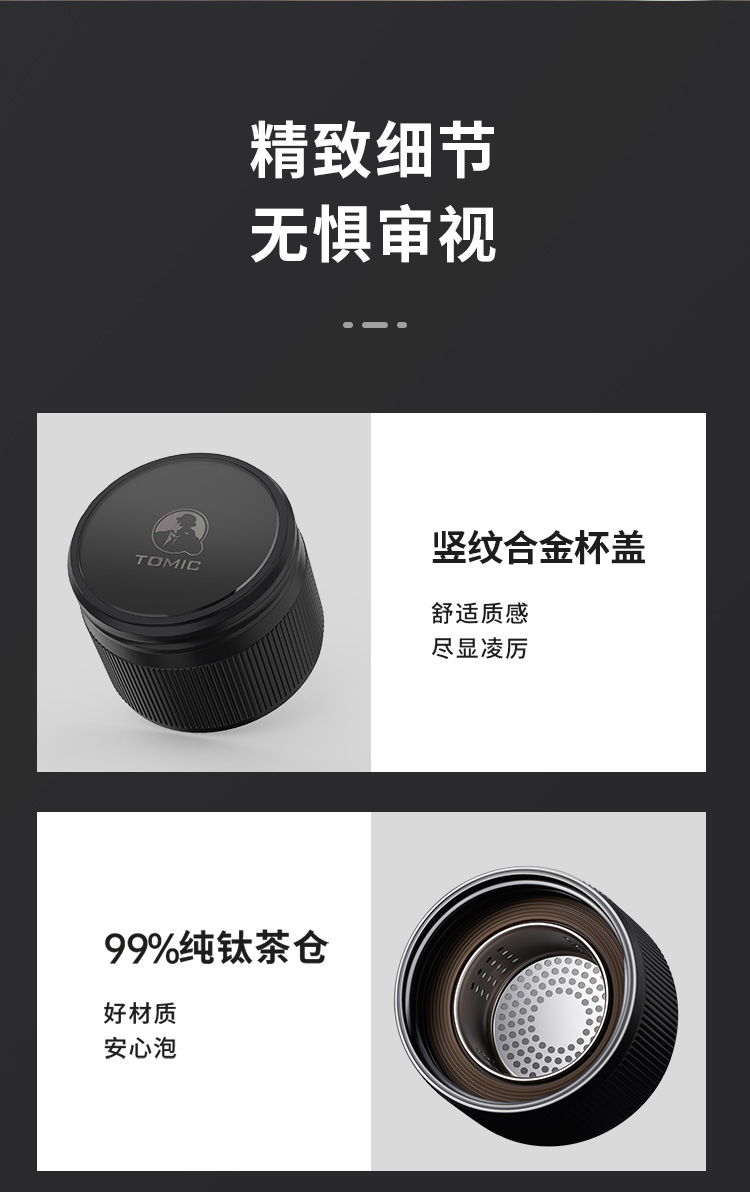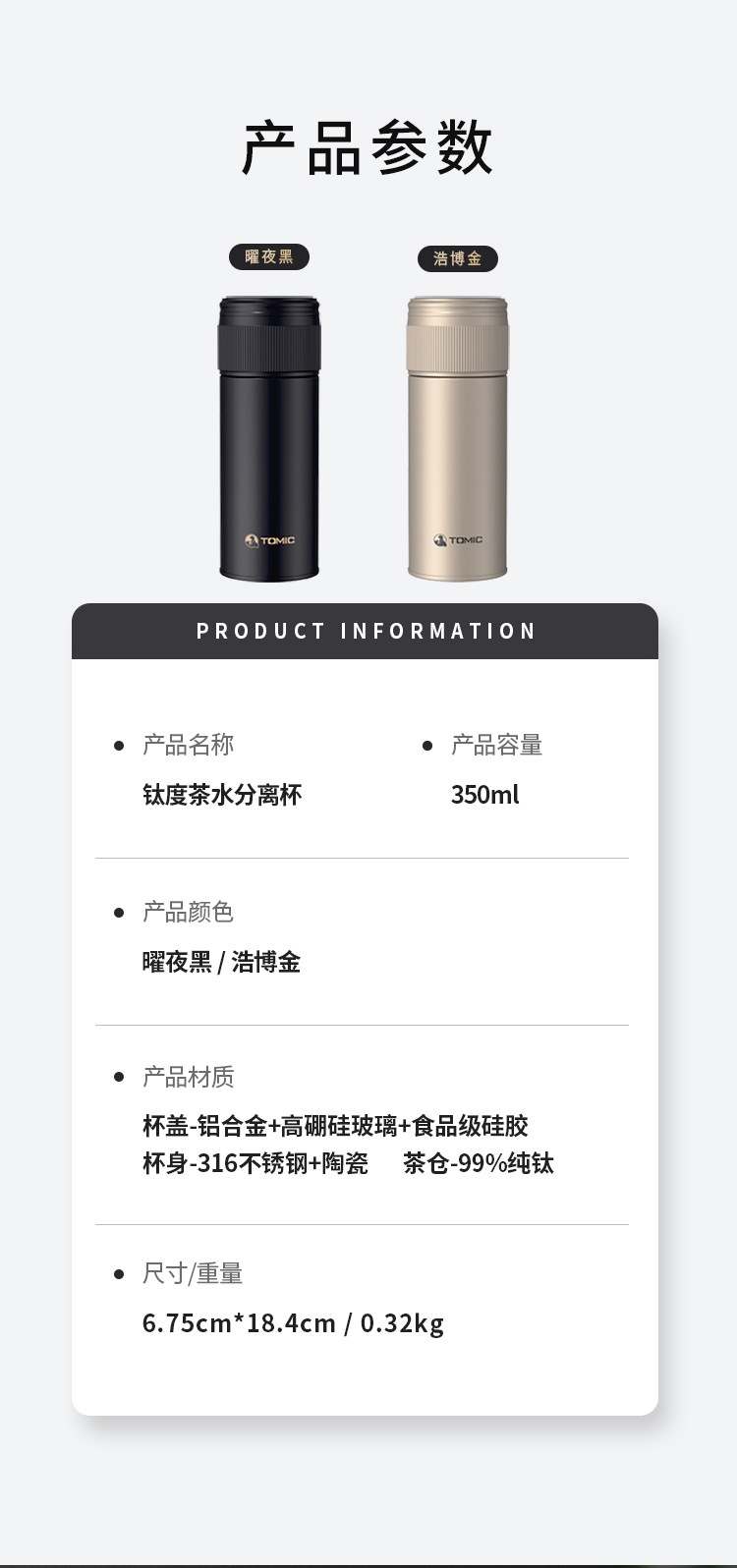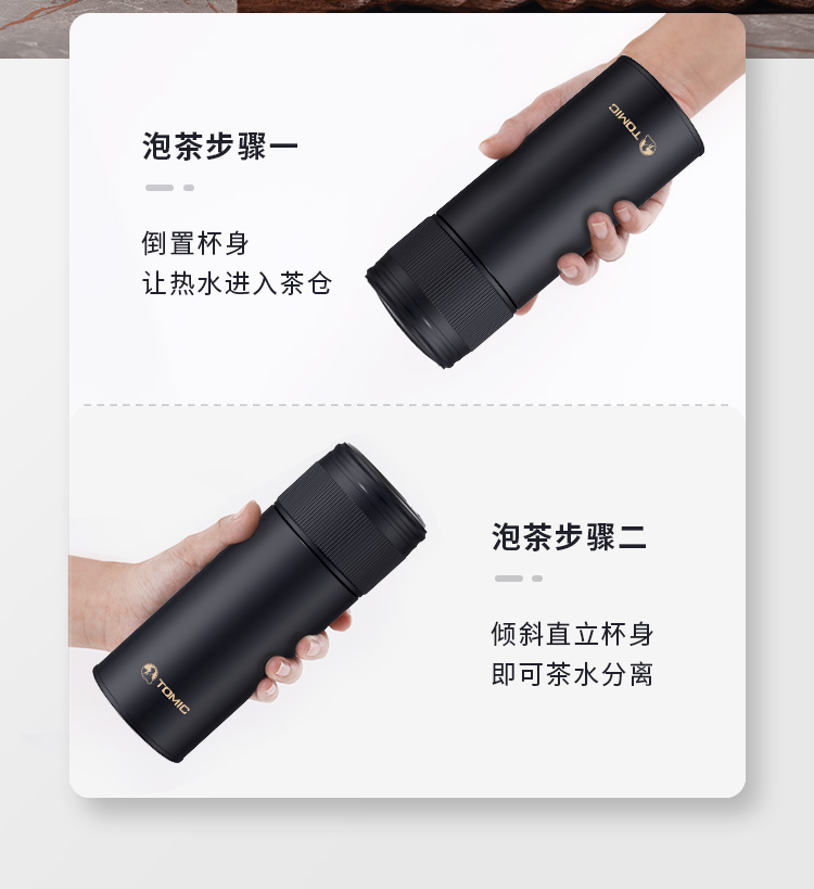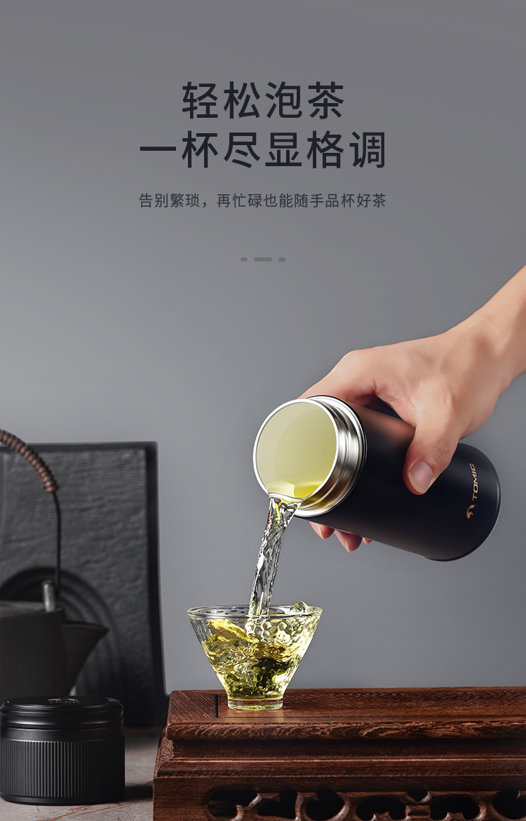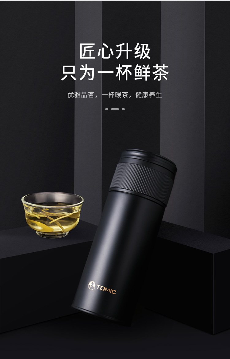 特美赢杯TOMIC保温杯茶水分离杯纯钛茶隔陶瓷内胆高档商务泡茶杯便携水杯男 黑色350ml