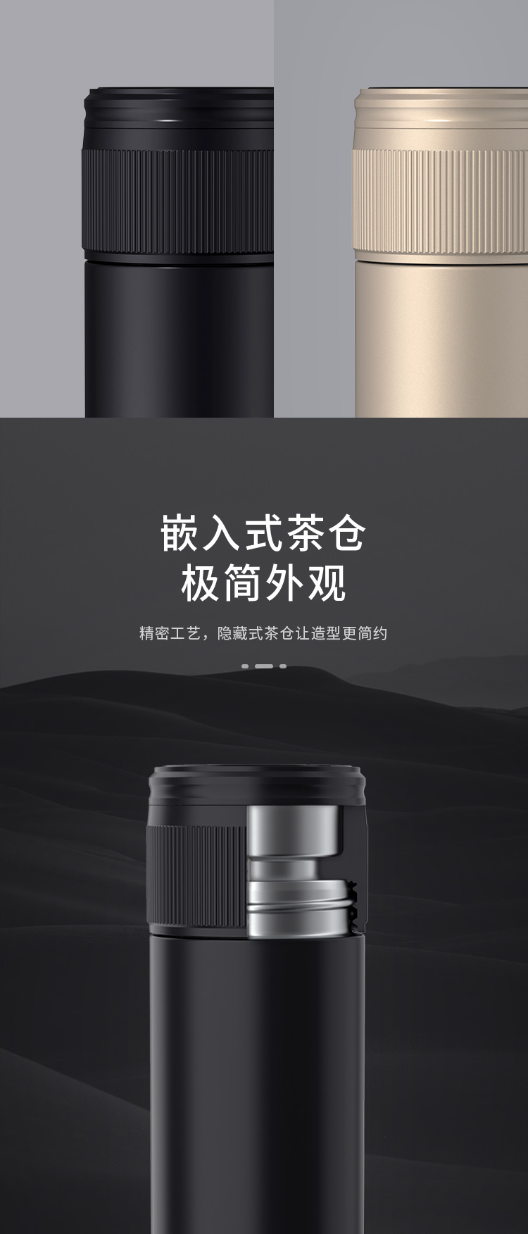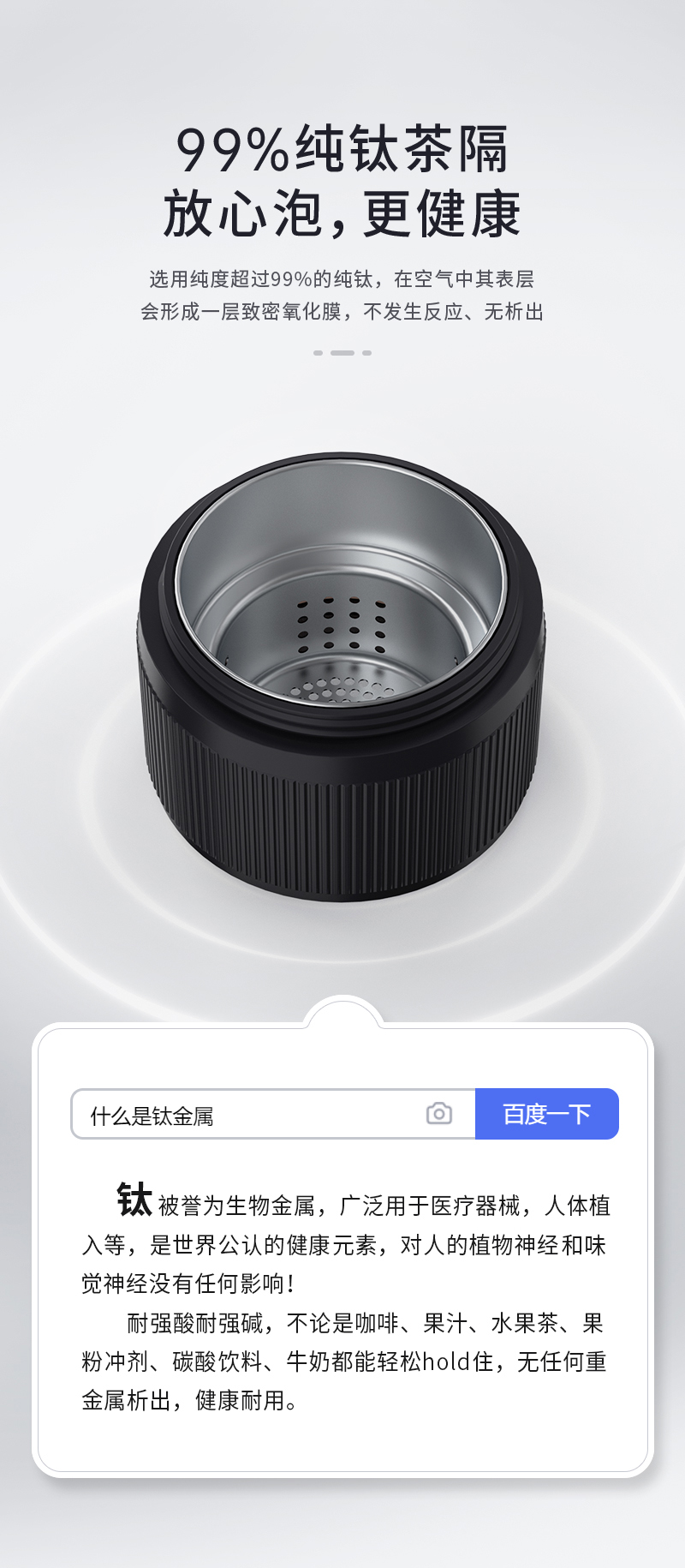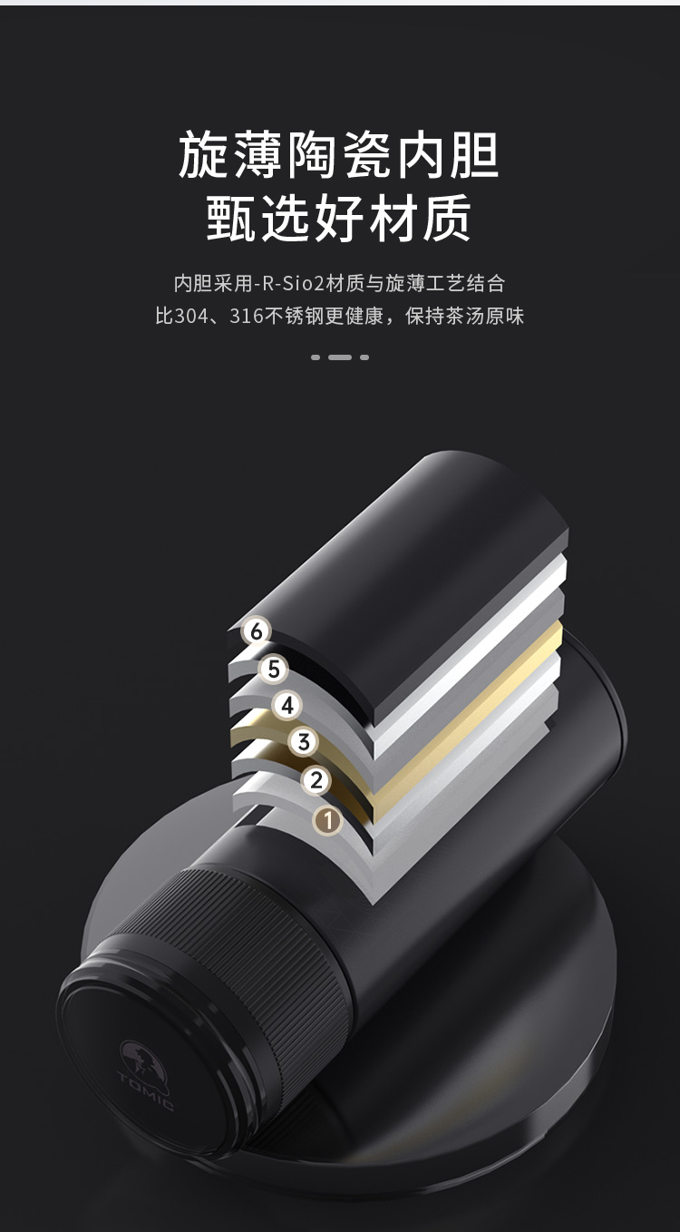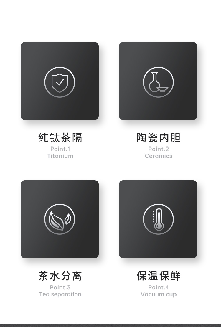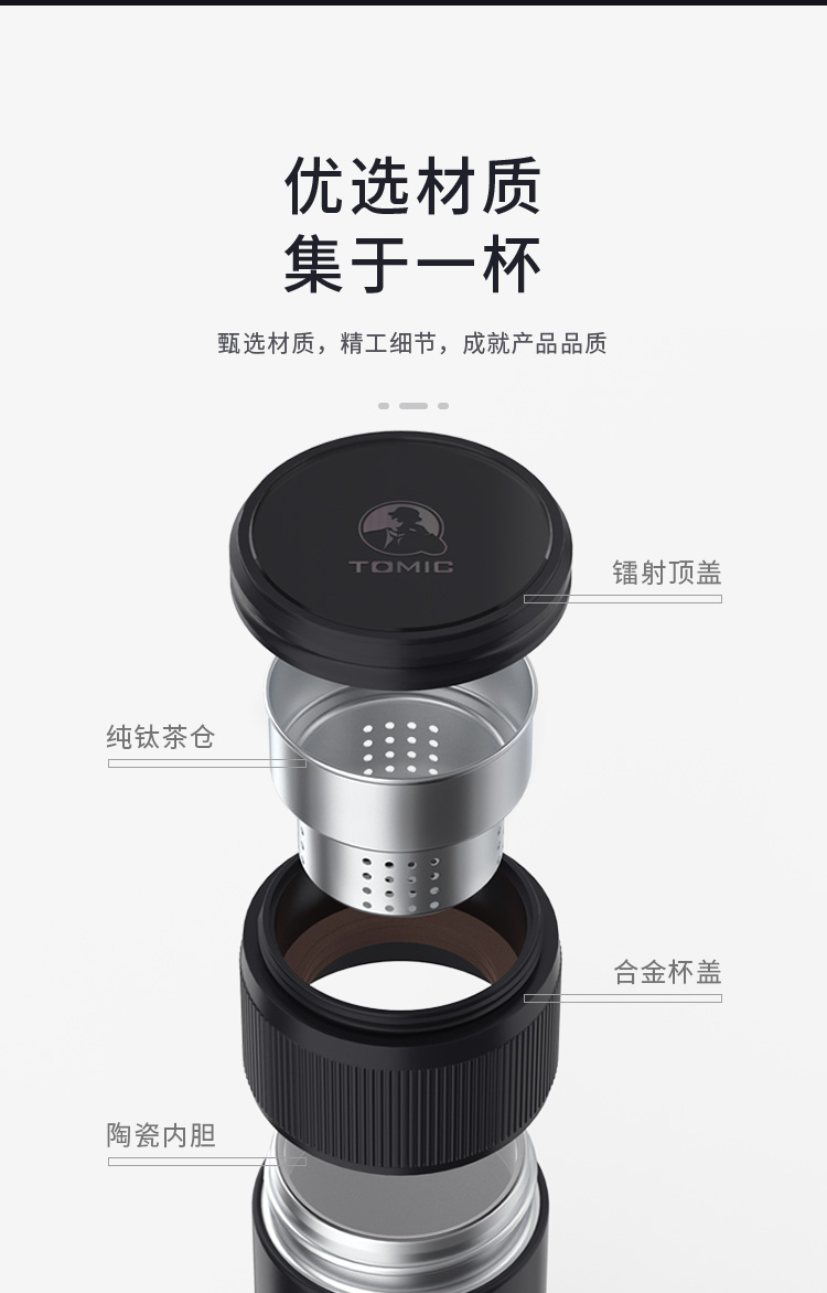特美赢杯TOMIC保温杯茶水分离杯纯钛茶隔陶瓷内胆高档商务泡茶杯便携水杯男 黑色350ml