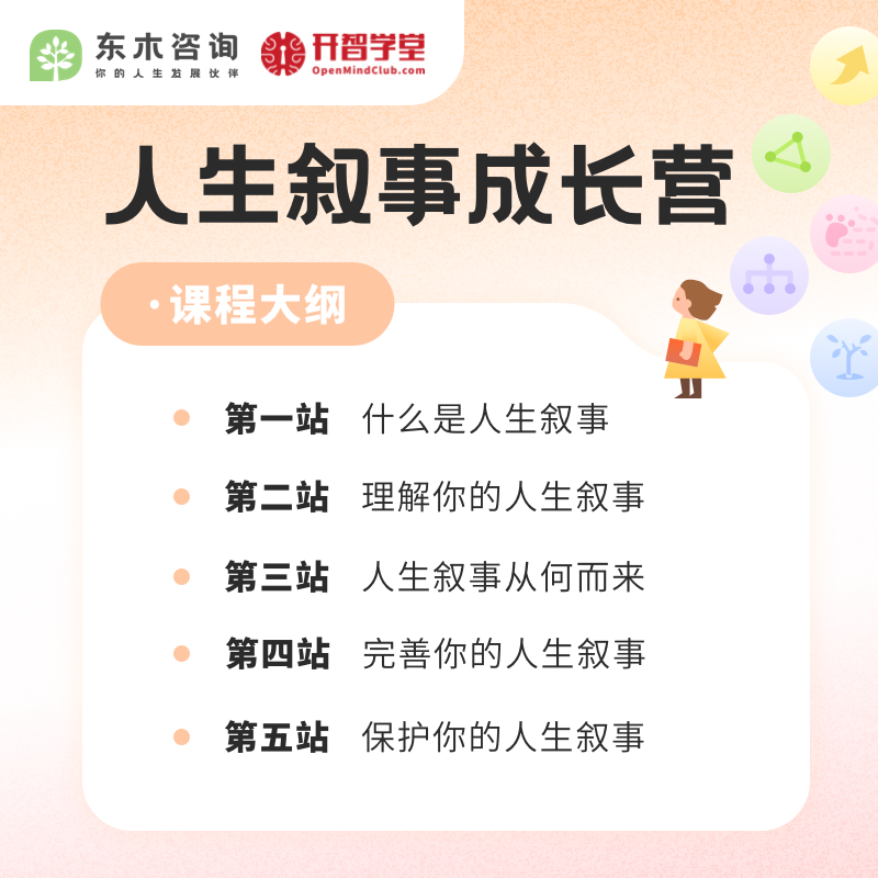 欢迎你加入「人生叙事成长营」,我们将陪伴你,用更科学的方法、更巧妙的工具,梳理并重塑你的人生叙事,整体性地理解自己、理解他人。