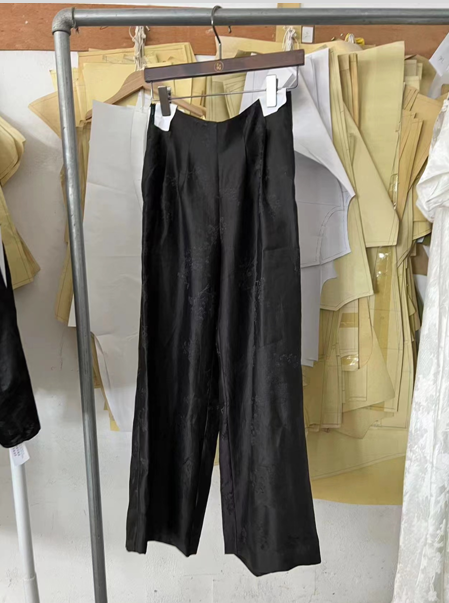 盛唐牡丹 | 真丝提花蝶恋花阔腿裤黑色 平腰版
