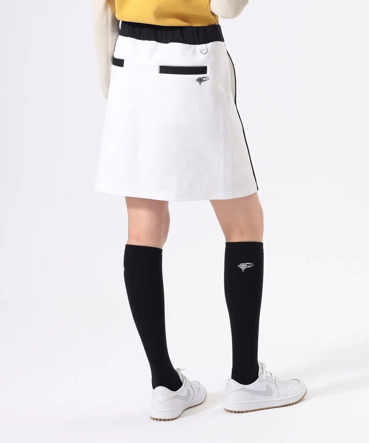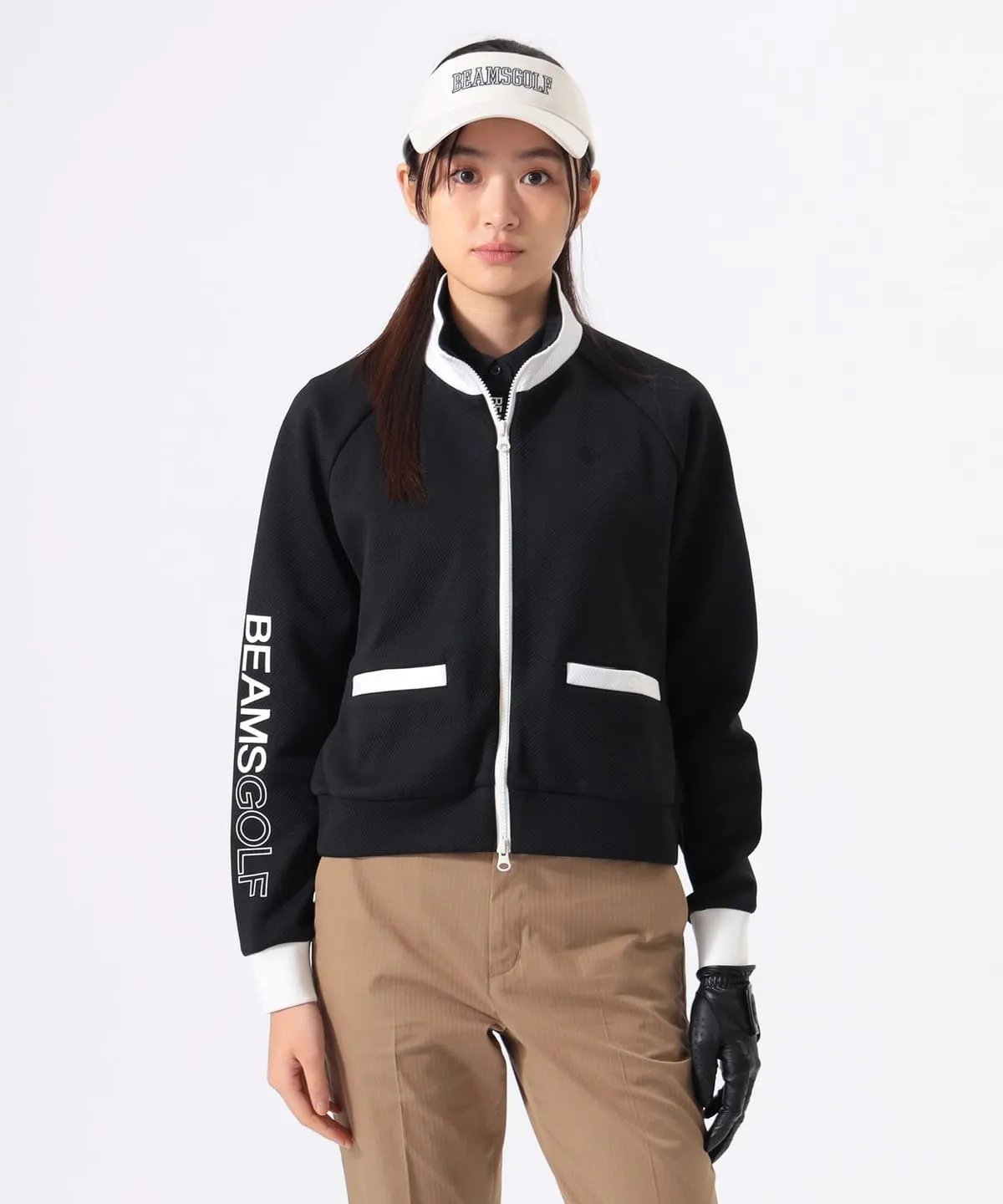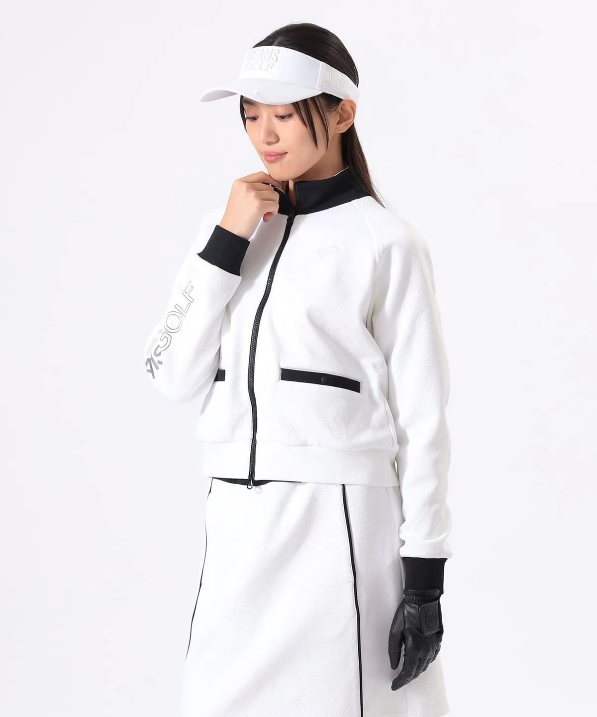 BEAMS GOLF 女款 斜纹黑白配色立领外套+抽绳短裙套装 弹力舒适防紫外线
