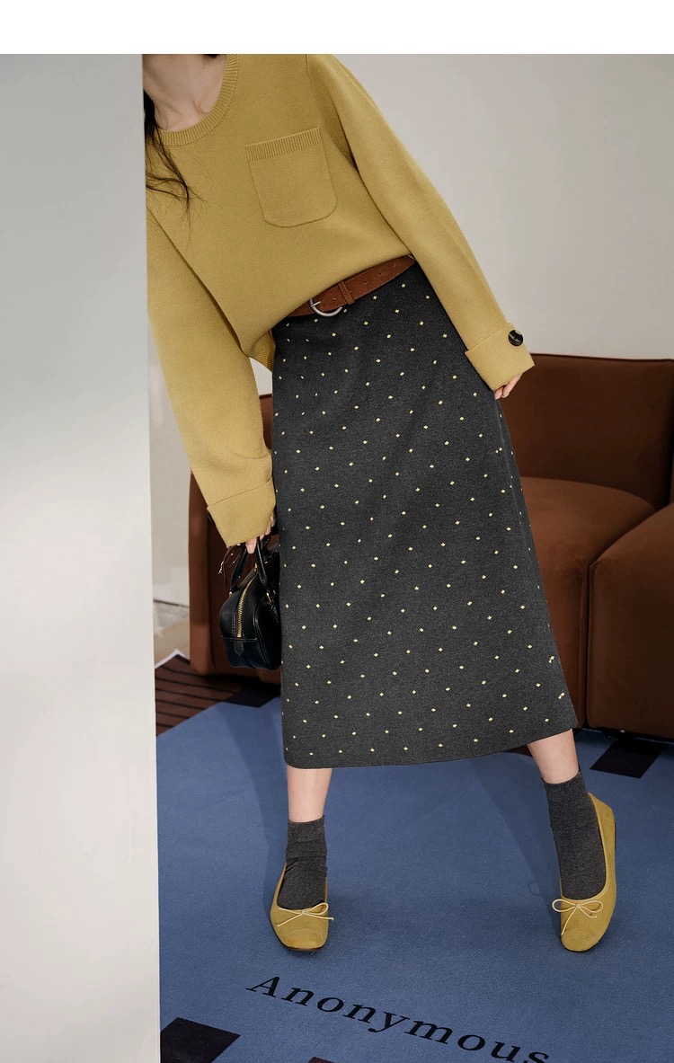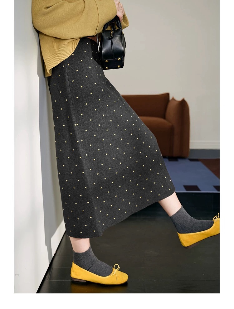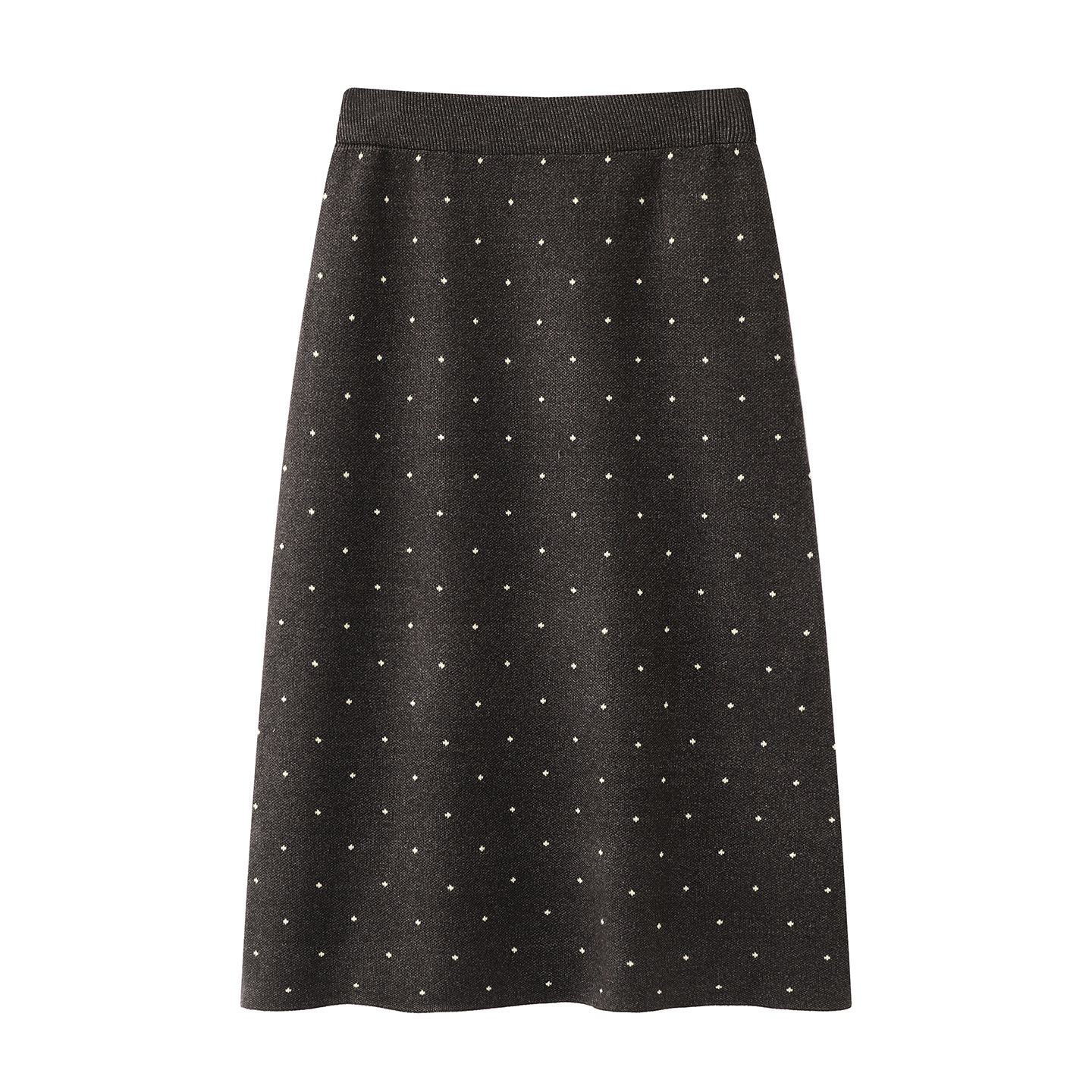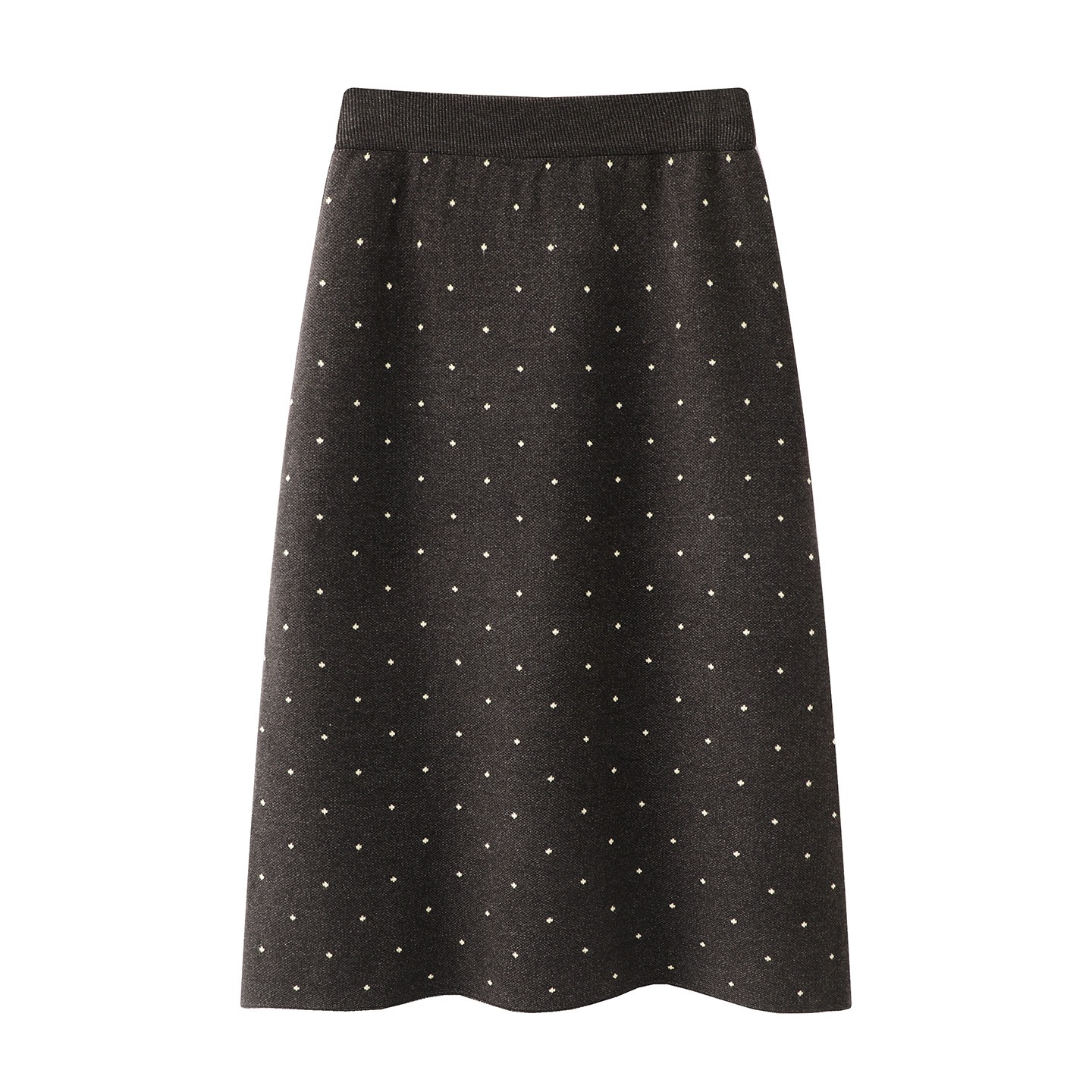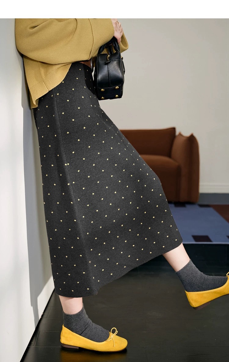 D112055深灰色波点毛衣裙a字裙半身裙25秋冬季穿搭新款女长裙子半裙