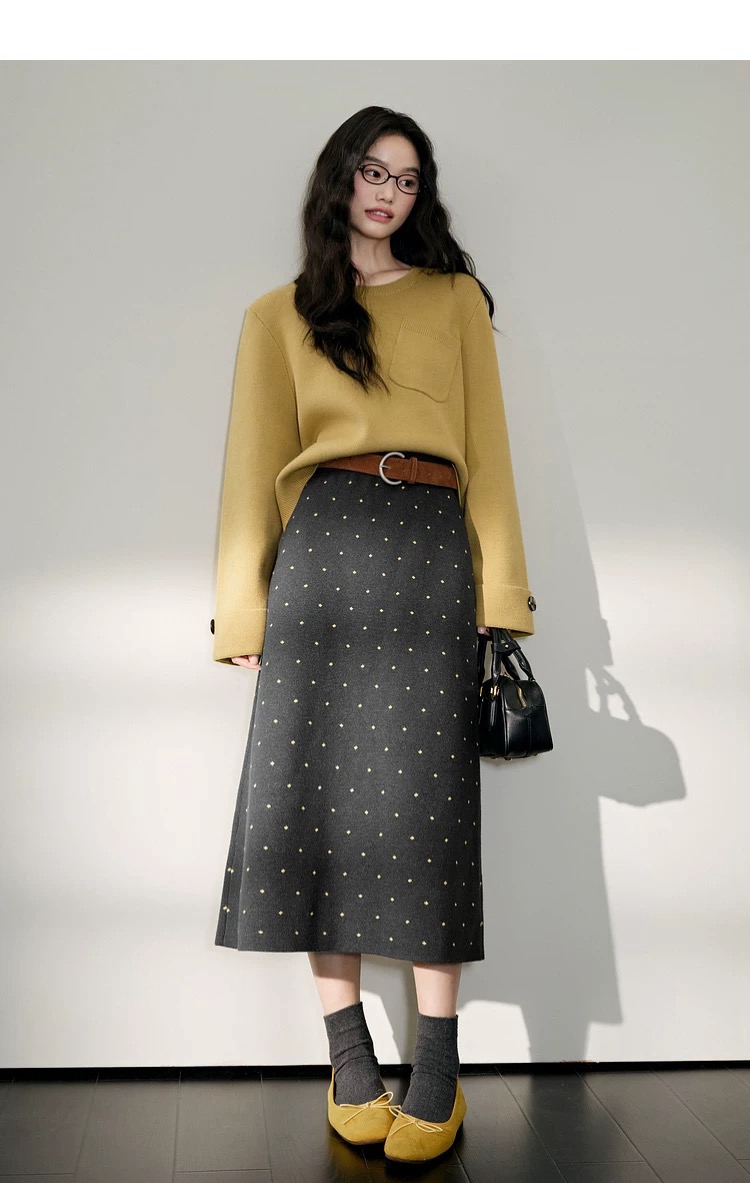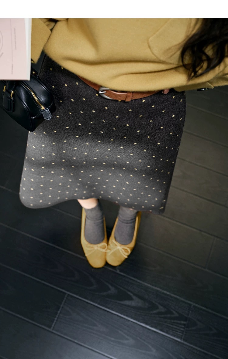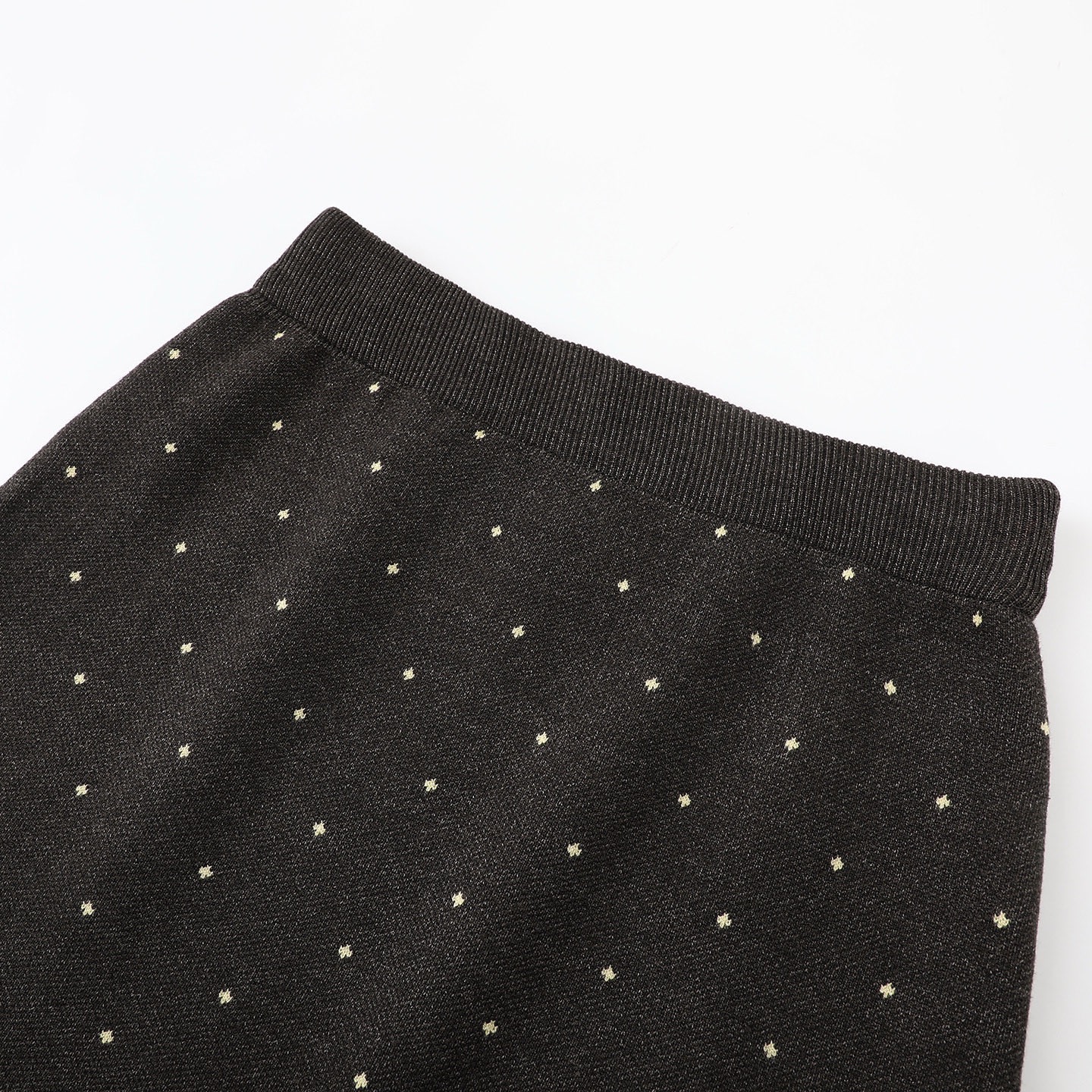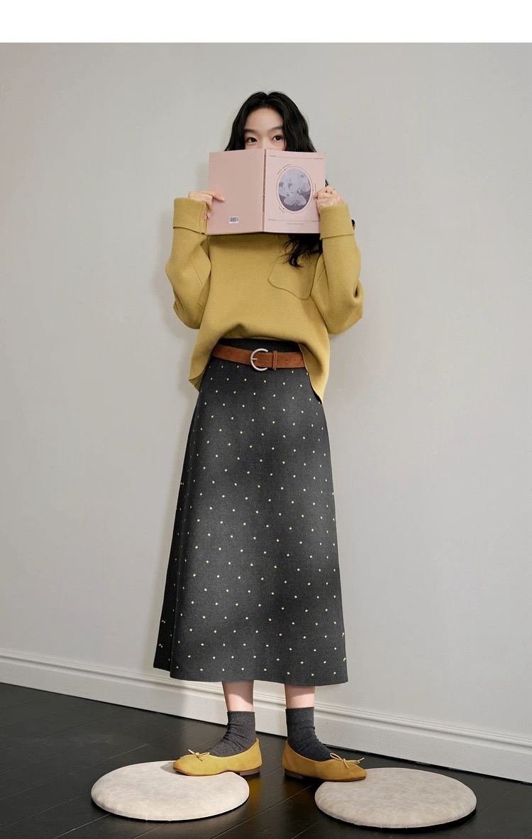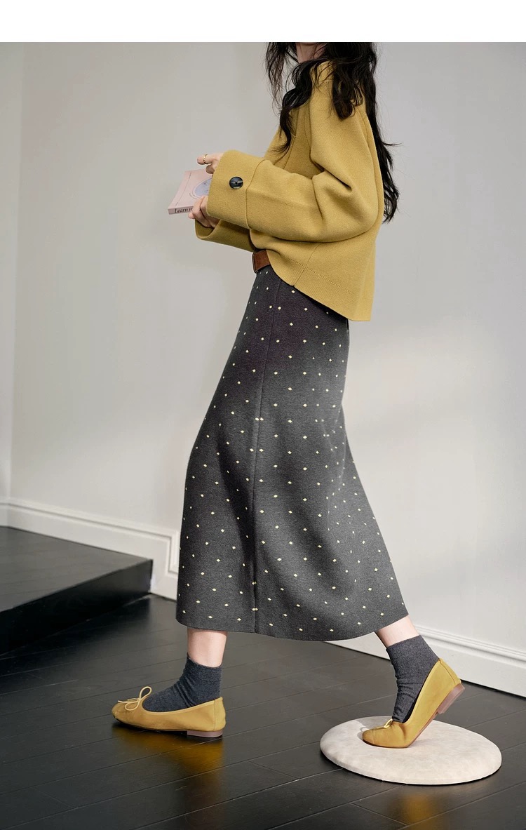 D112055深灰色波点毛衣裙a字裙半身裙25秋冬季穿搭新款女长裙子半裙