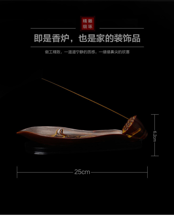 【家居摆件】陶瓷摆件 木质底座陶瓷复古荷花线香插创意家居摆件