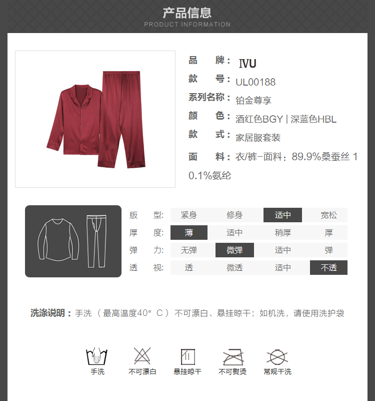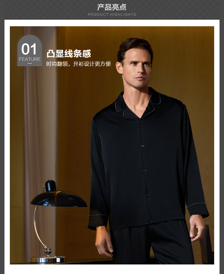 【3F】IVU桑蚕丝长男士薄款家居服套装UL00188