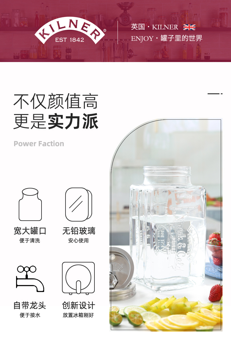 【英国进口】英国181年历史老牌KILNER 密封玻璃罐 复古玻璃罐2.0 带龙头液体储存罐储酒储果汁冰箱冷饮果汁罐 无铅玻璃罐