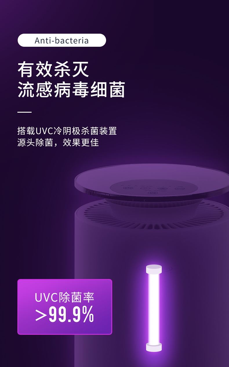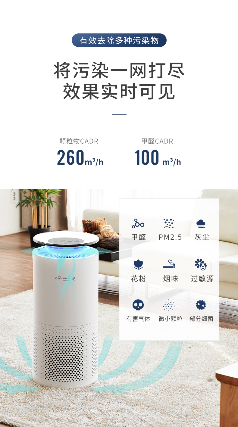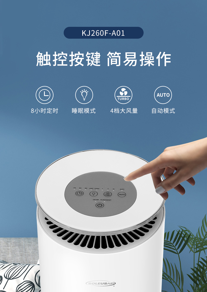 美国舒乐氏空气净化器家用负离子卧室办公智能氧吧雾霾粉尘KJ260F-A01