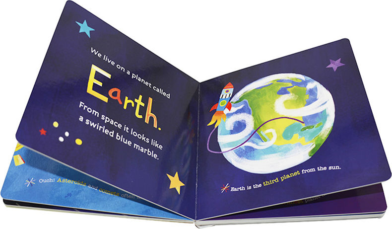 每一个孩子喜欢抬头看月亮在夜空中。这本太阳系可以让你的宝宝了解关于太阳、月亮、星星和行星的颜色、形状大小、以及入门级的科学小知识。