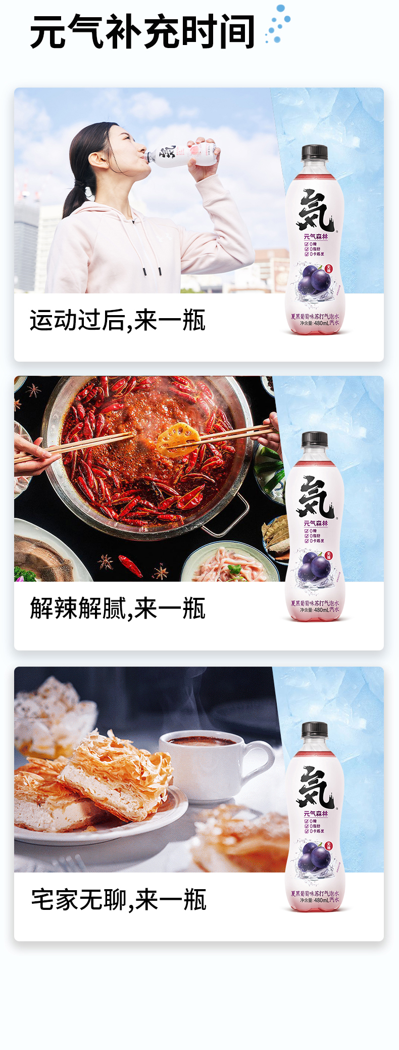 元气森林0糖0脂气泡水夏黑葡萄味480ml 汽水饮料
